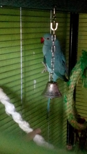 Alex malý má zobák jen přes půl hlavy a zahnutě špičatější.
