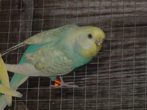 Samice, duhová andulka. Tyto andulky jsou velice krásné, zajímavě barevné a to buď s modrým, či zeleným nádechem. Ne zase tak časté.