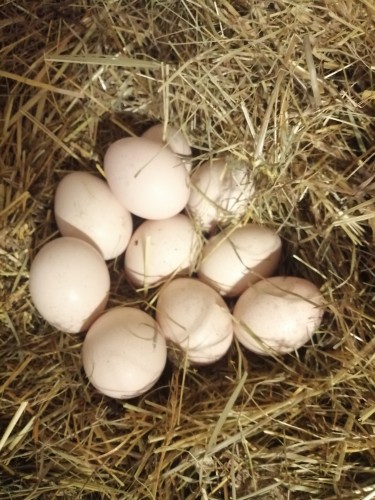 Pávice letos 3,5 roku, začala se snáškou před měsícem, založila hnízdo se 7 vejci, nesedla a pokračuje v další snášce. K původním 7 přidala další 4 ks a neustále se nemá k zasednutí.