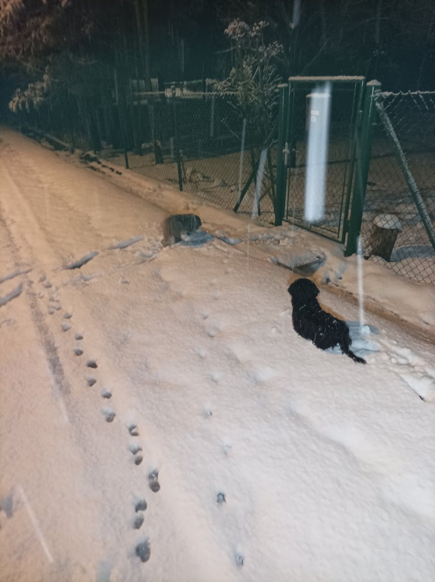 u nás déšť se sněhem slabší vítr , já i pes v pláštěnkách, v lese poprašek, nikde ani noha, dali jsme jen hodinu …