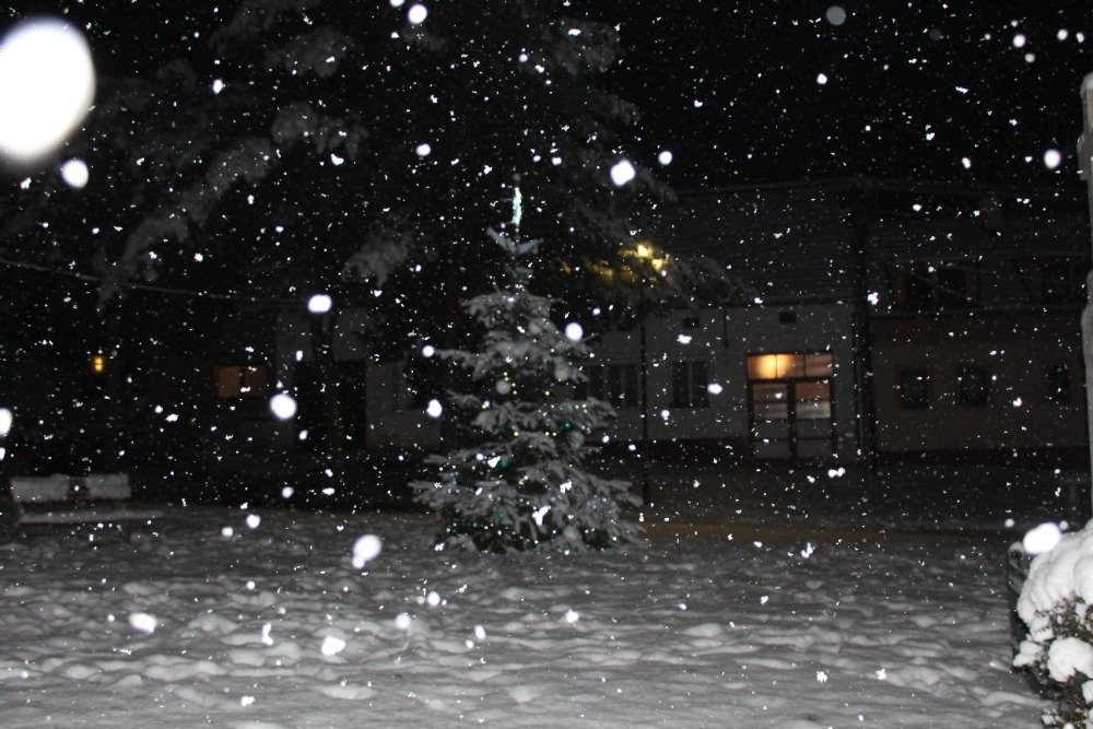 včera v noci po odpolední stromek na návsi a pejsci na rychlé venčící noční vycházce
