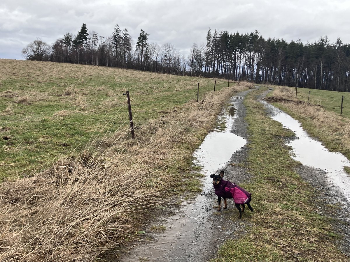 Já dnes odešla z práce dřív. Vzala psa, že zkusíme konečně zajít do terénu. Bohužel, musela jsem to nakonec vzdát, cesta šílená, mokrá , rozježděná auty výletníků. Takže následovala otočka a pomalý odchod stejnou cestou domů. Doufám, že už nebude pršet, ať terén trochu obschne jinak se do “našeho lesa” dostaneme snad až na jaře ☹️.