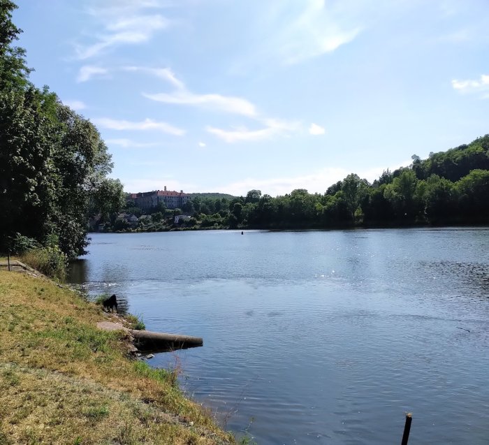 Ano, byla to vrba. Měla jsem pěkně nahnáno. Přemýšlím, kam jinam. Nenapadá mě další místo, kam bych za vedra mohla k vodě dojít za 5 minut.