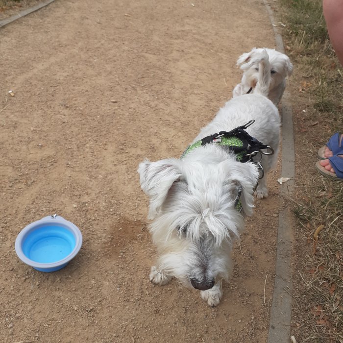 Venčili jsme se včera i s maltézačkou kamarádky a z fotky vylezlo malé bílé slůně s chobotem…podívejte se, že jo, přísahám! Je hned za běloušem…😂 🤭