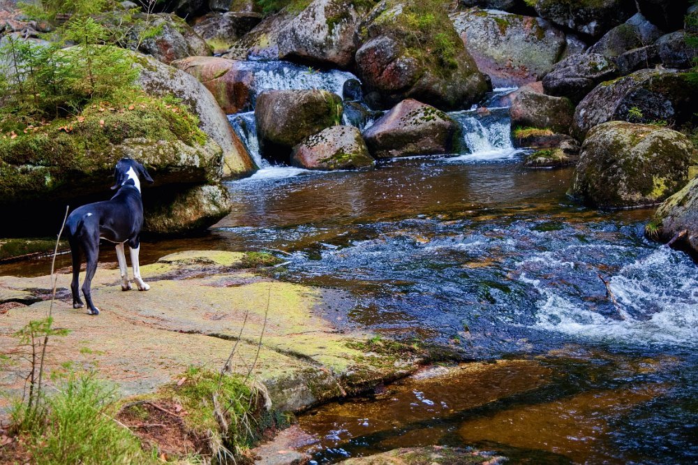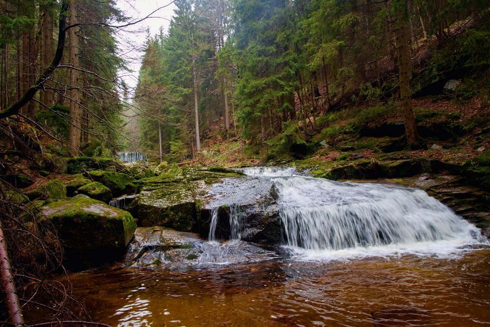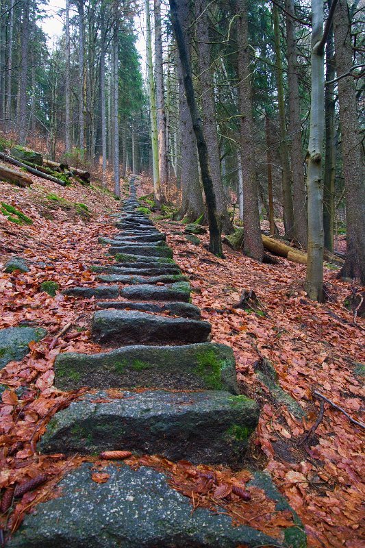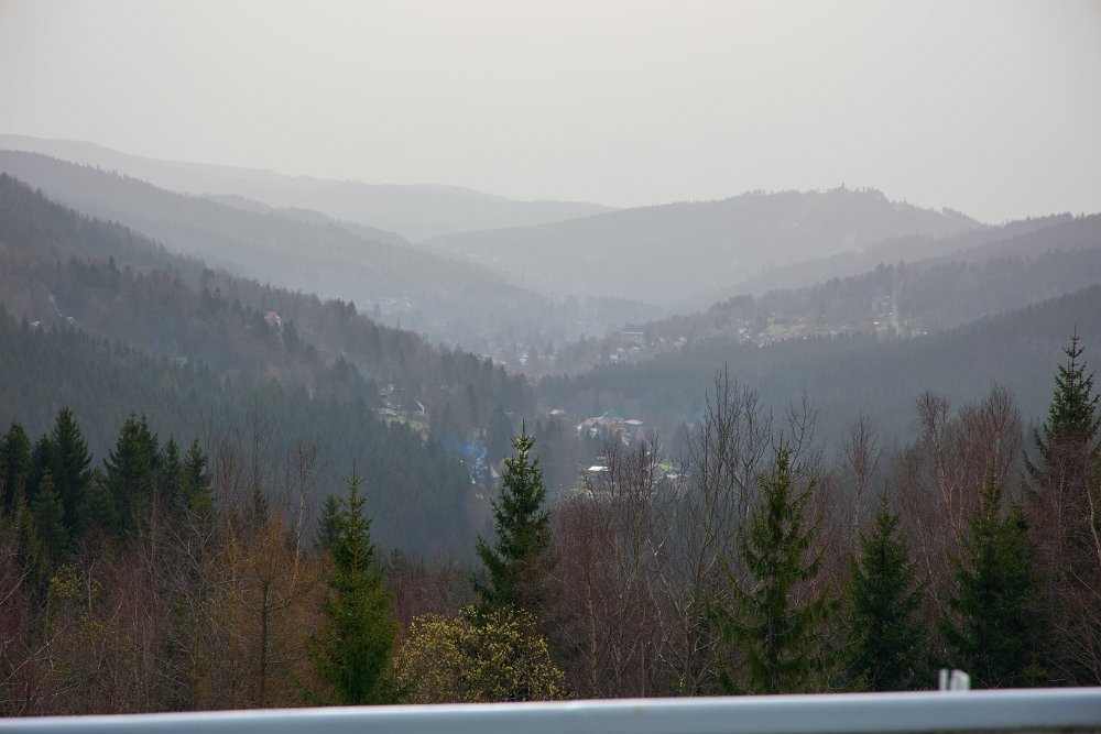 a teď ty nepsí venčící - nedělní Kamenice a Josefodolská přehrada (viditelnost ještě saharská), pátá fotka je Příšovická pískovna ze středy a za naší magnólií jsou včerejší Jizerky. Bílá Desná (po tragickém protržení přehrady byla regulována již jen řadou pravidelných fotogenických stupňů občas proložených nějakým tím vodopádkem) a od rozhledny na Světlém vrchu jsme dolů klesali po Mariánských schodech. Jsou staré, ošlapané žulové, je jich 365 a děsně klouzaly…
