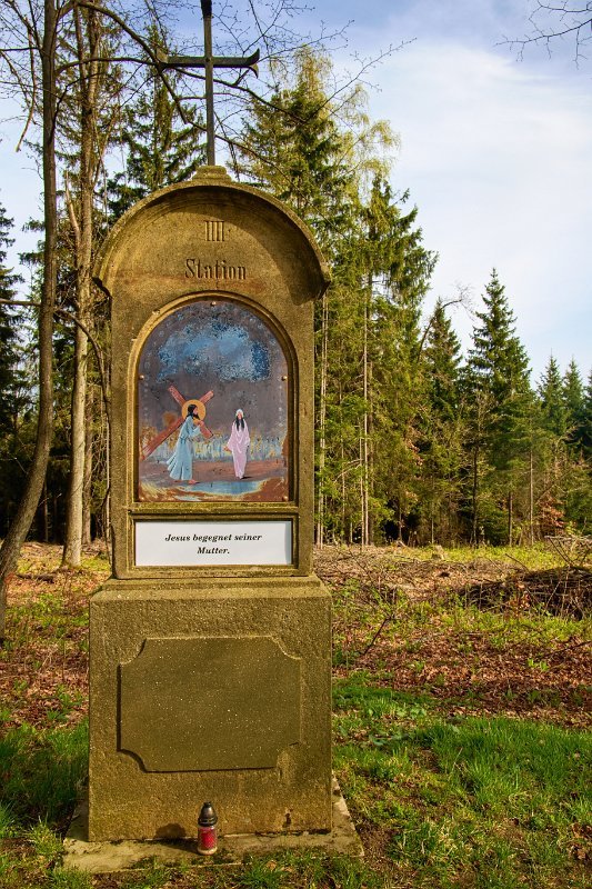 lipová alej z Lipové - zatopený žulový lom - dole je Lobendava - Anenský vrch - kaple svaté Anny otvorem ve dveřích - zajímavá Getsemanská zahrada - Yoda měl ještě hodně sil - křížovou cestu opravuje obec Lobendava - po neznačené cestě na vrch Jáchym - zdejší areál opravily Lesy ČR - zastavení zůstala v původní němčině - kaple svatého Jáchyma - Yoda už se s narůstajícími kilometry i narůstající teplotou klidní - oběd na hraniční stezce - Třípanský kámen (hranice Čech, Saska a Lužice) - jasně zelené jaro - zaniklý hřbitov v Liščí (torzo kaple prosvítá v hustém křáčí) - Zámecký rybník - zámek Lipová (nesmírně cenná a zajímavá stavba… bohužel německý lazaret, český domov důchodců, vojenská posádka a následně i špatný prodej… teď pracují, snaží se… ale obnovit vše půjde ztuha) - Lipová má ty prastaré lípy všude (a nové taky vysazují kde se dá)