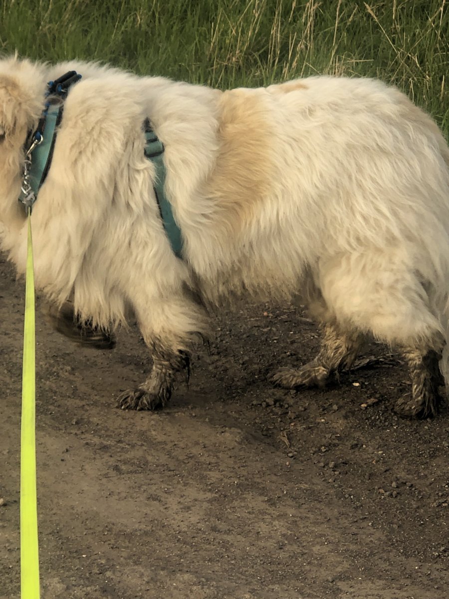 Mezi fotkami také detail mojí bílé princezničky, zase potvora objevila bahnitou louži v terénní vlně, kterou jsem neviděla.