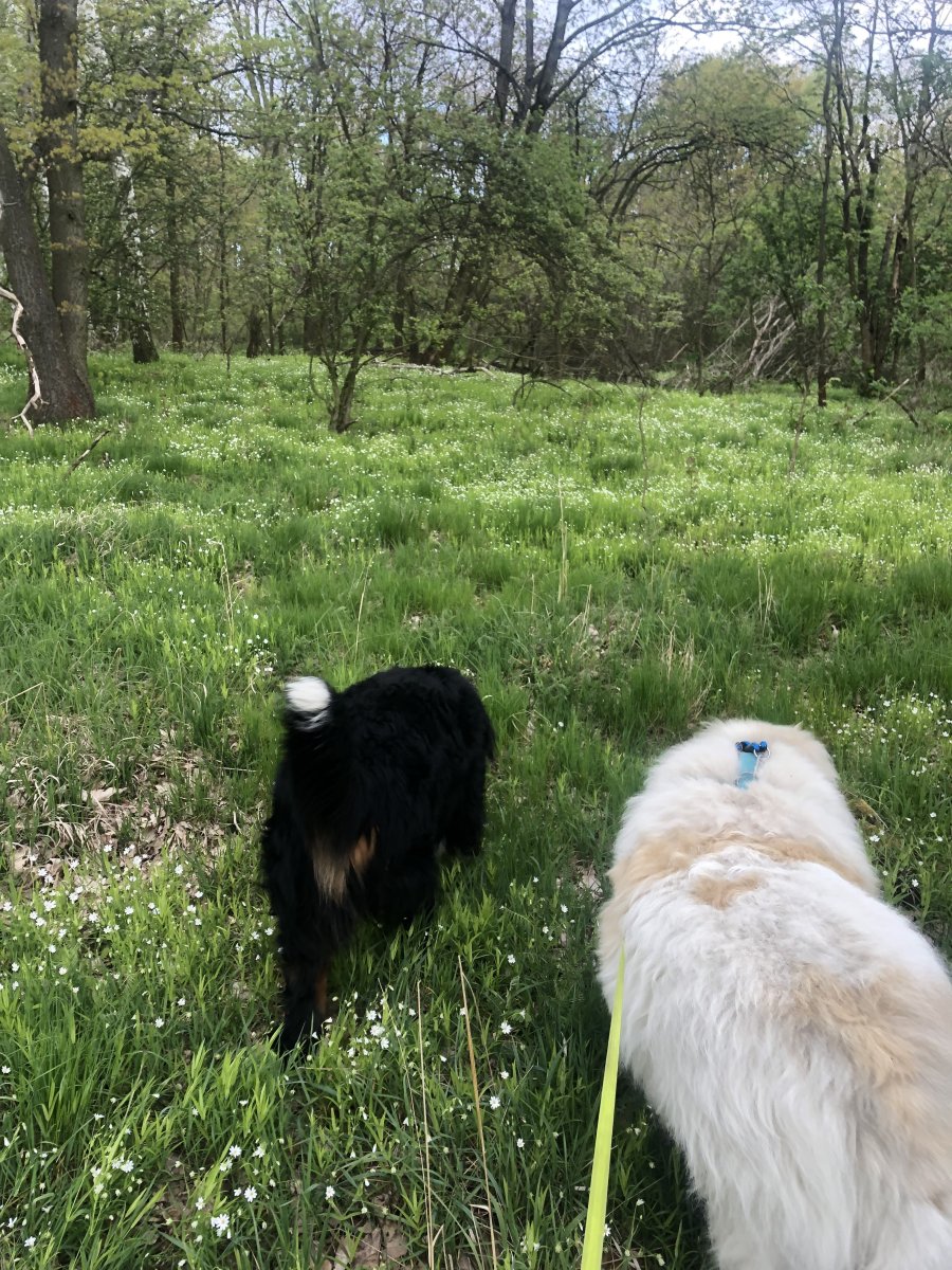 A jednou jsme s minulým psem potkali v lese selátka. Pěkně to kvičelo. Pěkně hnusně jsem se vyděsila. Bachyně vidět nebyla. Tak jsme se otočili a honem rychle jsme šli stejnou cestou zpět. Pak jsem se tomu místu nějakou dobu vyhýbala. A pak jsem si řekla, že to můžu potkat úplně kdekoliv, tak jsem tam zase začla chodit. Už se to nikdy neopakovalo.