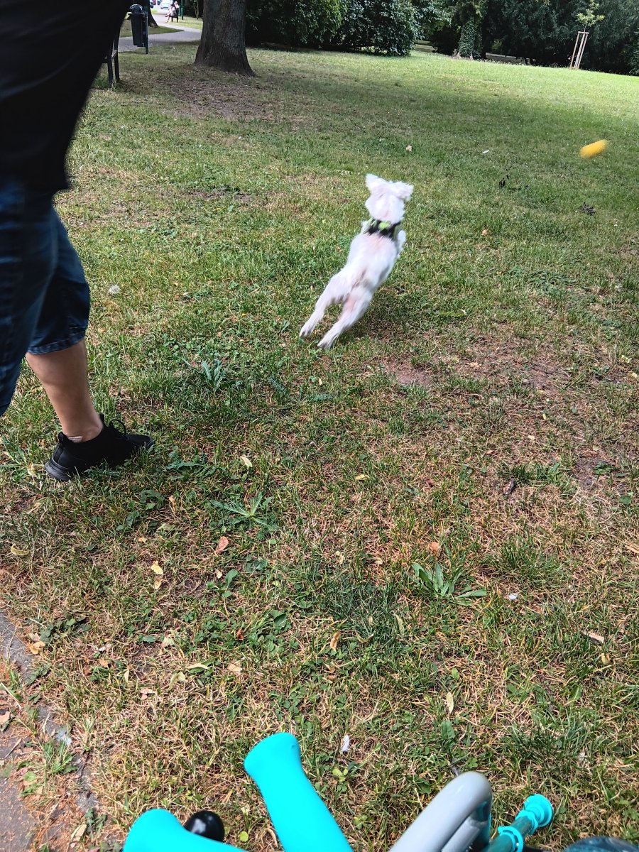 No tyhlety výlety, kdy si jdeme jen my dvě, začínají u ní vypěstovávát závislot na mé osobě. Dneska jsem jí předala muži, aby s ní šel on a já mezi tím “ulovím” v Lidlu něco k večeři a nejdřív odmítla vůbec jít a nakonec jsem koukala ve zpětném zrcátku, že se snaží běžet za autem a mého dvoumetrového muže táhnout…no on ale fakt s ní kousek běžel, což je teda úkaz, kterému by asi nikdo neuvěřil. Není běhací typ 😄. Přitom tahle situace, dojdu k muži do práce s Malinou, vezmu si auto a on jde domů se psem, není u nás nic tak vzácného, minimálně jednou do měsíce to proběhne, takže pro Malinu normální situace. Takže mě to i dneska překvapilo, jak se rozhodla, že teda beze mě nikam…