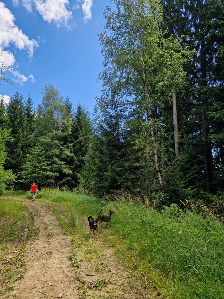 My jsme dneska venčili nefotitelný bígle Sama a Tami z výzkumáku. Byla to jejich první procházka v přírodě v životě, tak to bylo trochu veselé. Samík šel jak profík a ochutnával každou pampelišku. Tami infarkt z každýho listu, co se pohnul. 😏 Nakonec jsme dali asi tři čtyři kiláčky a ti jsou oba úplně vyřízení. 🤭