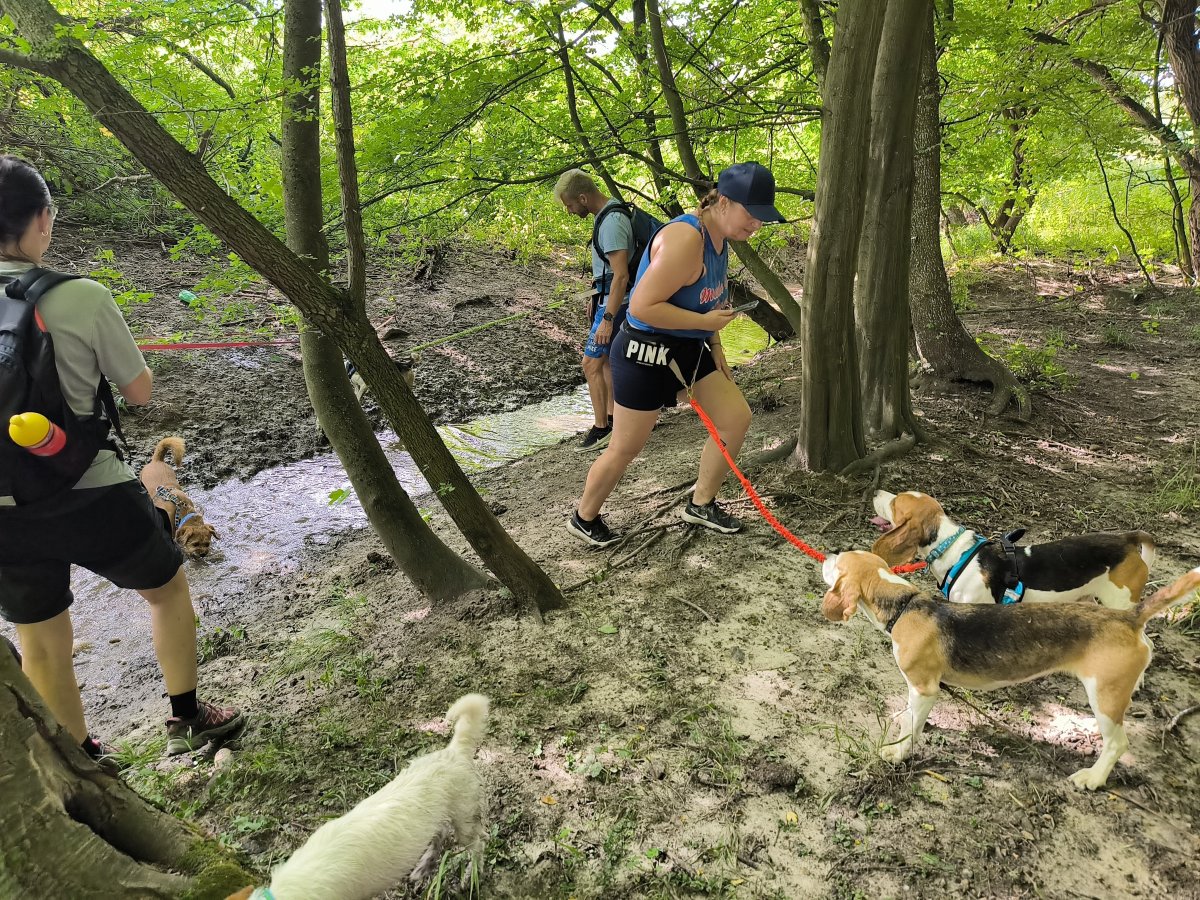 To víte, že mají i separačku. Velice rychle si zvyknou na to nové a hezké a pak se zase můžou bát, že o to přijdou. Jinak já nevidím nijak výrazný rozdíl mezi psy z výzkumáku a třeba psy z množíren. Zaseknutá socializace, všechno se musí doučit a hlavně je potřeba myslet na to, že je to pořád bígl. Tam se fakt nic nemění. 😂
