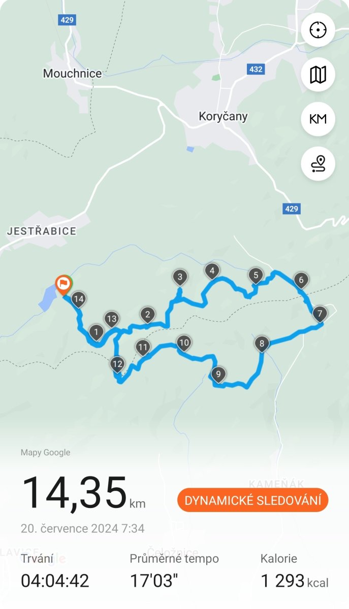 Akorát mi klasicky mapy.cz naměřily necelých 12 kilometrů a nakonec to bylo víc jak 14. 🤐