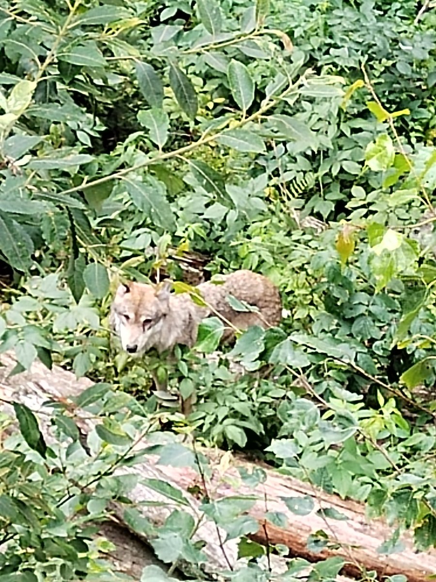Fotky nic moc, alespoň jsem stihla vyfotit vlka jak si pochutnává na malinách.