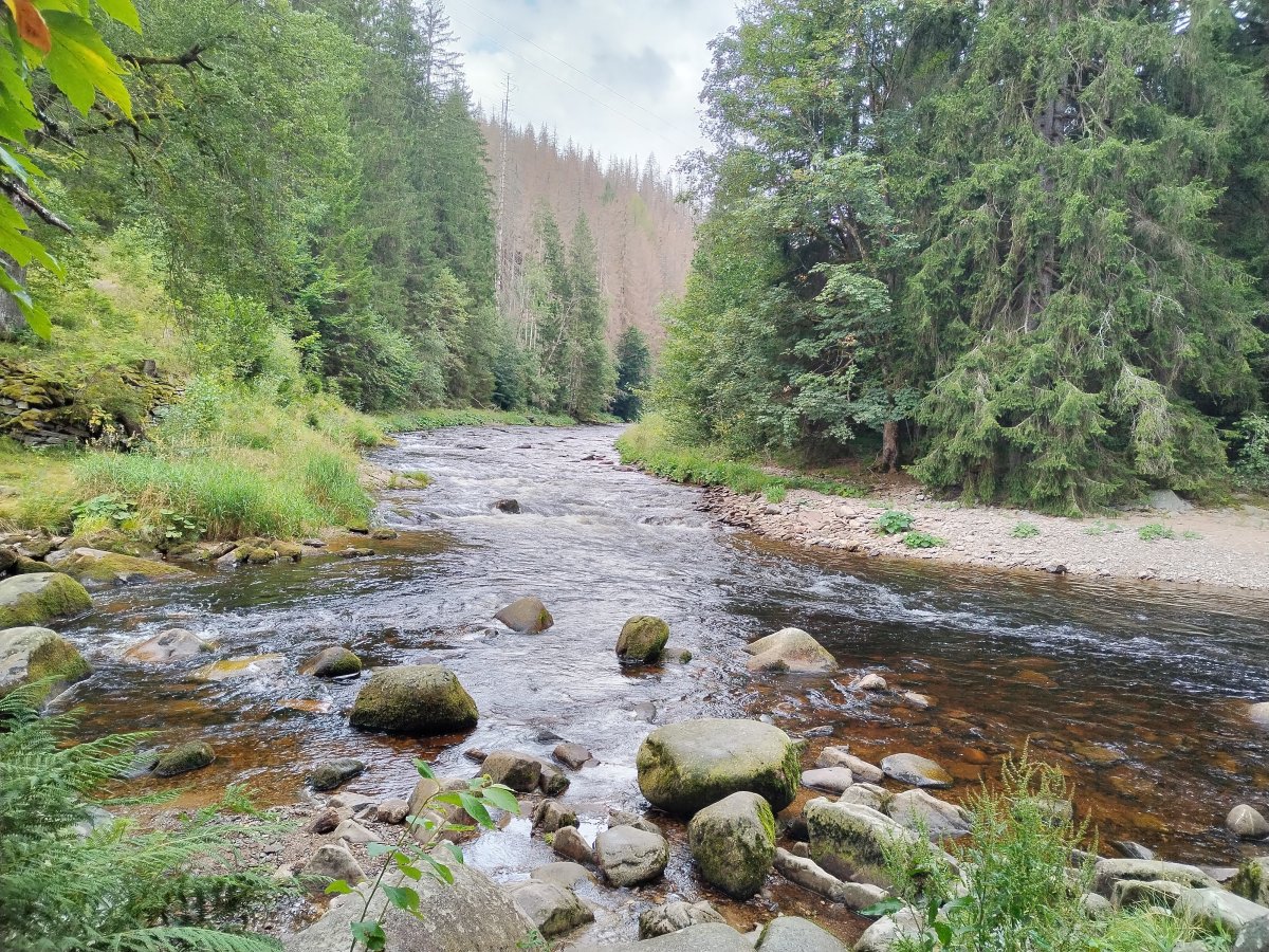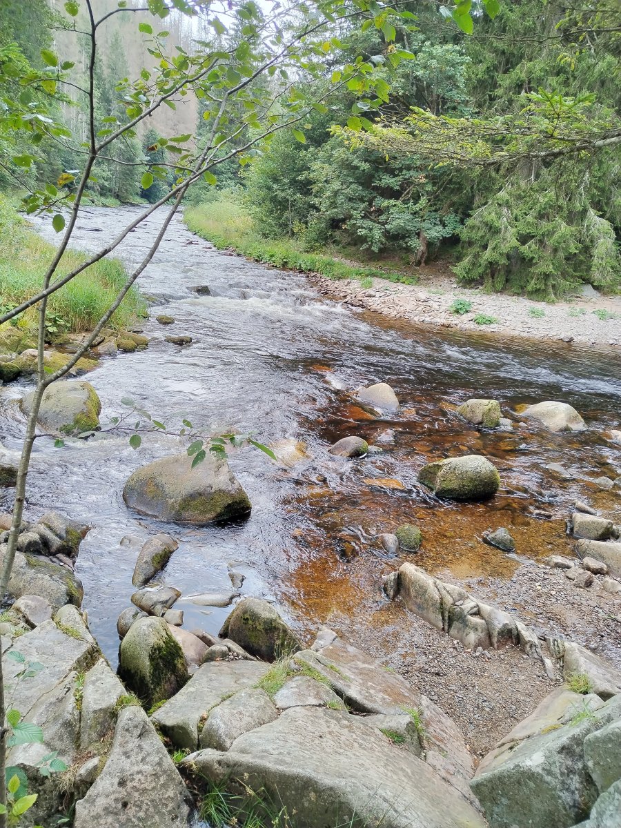 Dneska jsme jeli na Šumavu, chtěla jsem vzít alespoň jezevčici, ale na Srní k výběhu vlků, mají psi zákaz vstupu. Ještě jsme zastavili na Čeňkově pile, prošli se Kvildou a Modravou. Navštívili moc pěkné muzeum v Rábí.