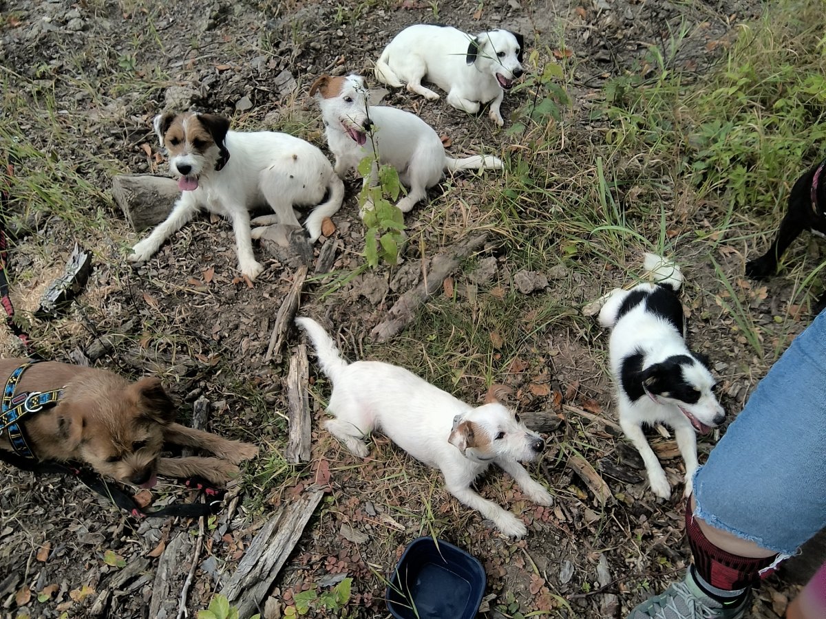 A na patnáctém kilometru jsem vyfotila vzácný úkaz - dobrovolně ležící teriéry. 🤣