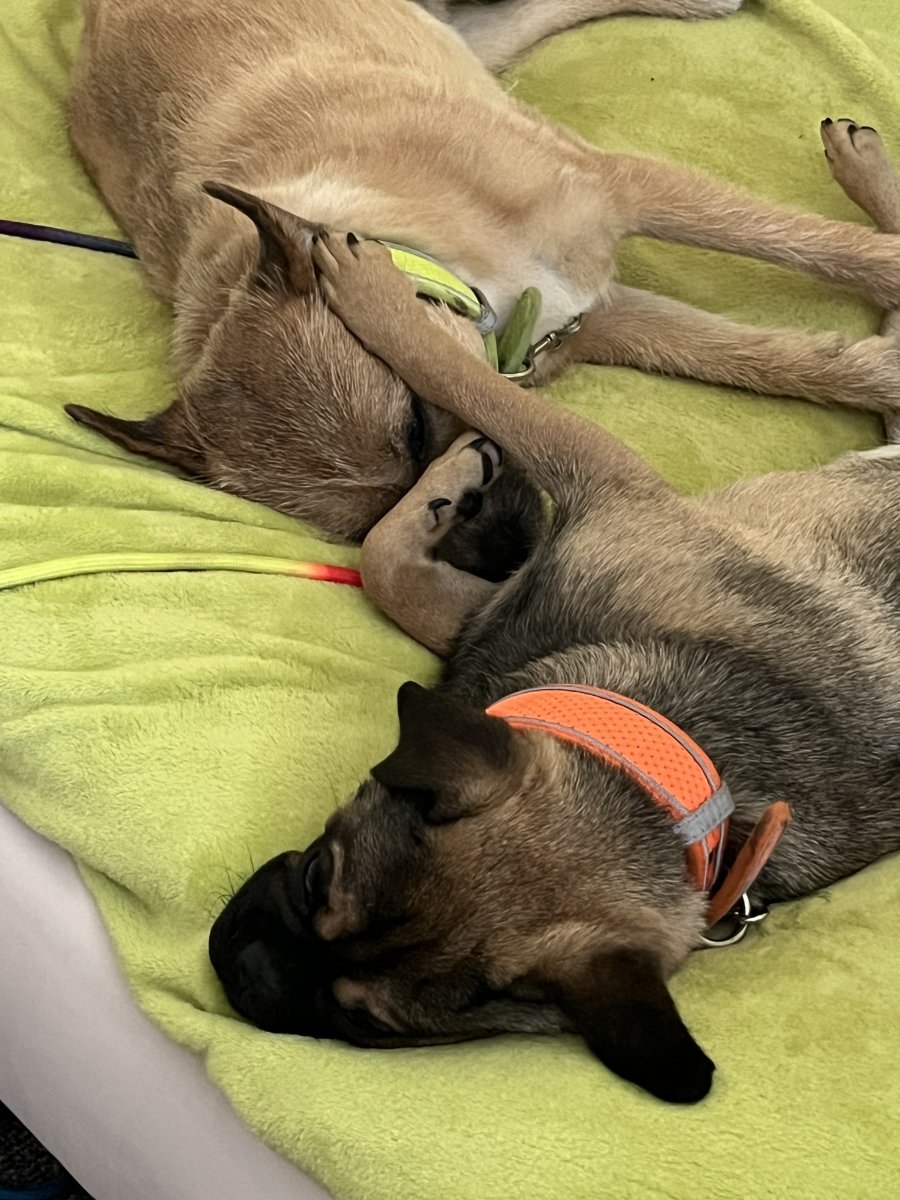 Naštěstí se to tentokrát obešlo bez zlomeniny, jen se cítím jak přejetá rotvíkem. Došlo k tomu na cvičáku. Cvičení v řadě, rotvík byl hned vlevo od Bonnie a mě. Povel odložení vleže. Mokrá tráva, Bonnie nedolehla na lokty. Tak jsem se předklonila, abych ji navedla rukou. A nevšimla jsem si, že rotvík se rozhodl na odložení kašlat a rozběhl se. Vzal to doslova přese mě, náraz byl můj lícní oblouk versus rozběhnutá mašina. Spadla jsem, brýle metr ode mě, rotvík běžel dál. Nikoho nenapadl, jen běžel za bodem zájmu jako buldozer a stála jsem v cestě.