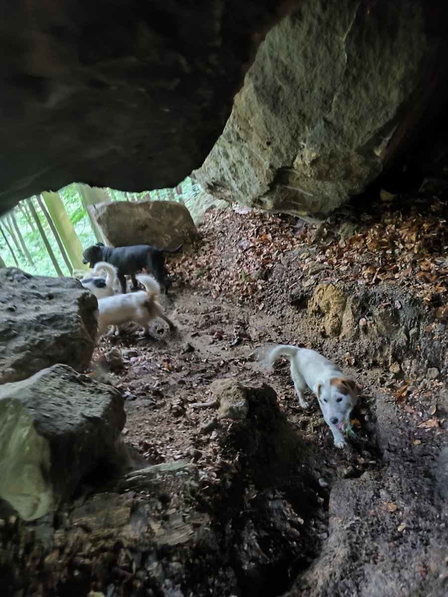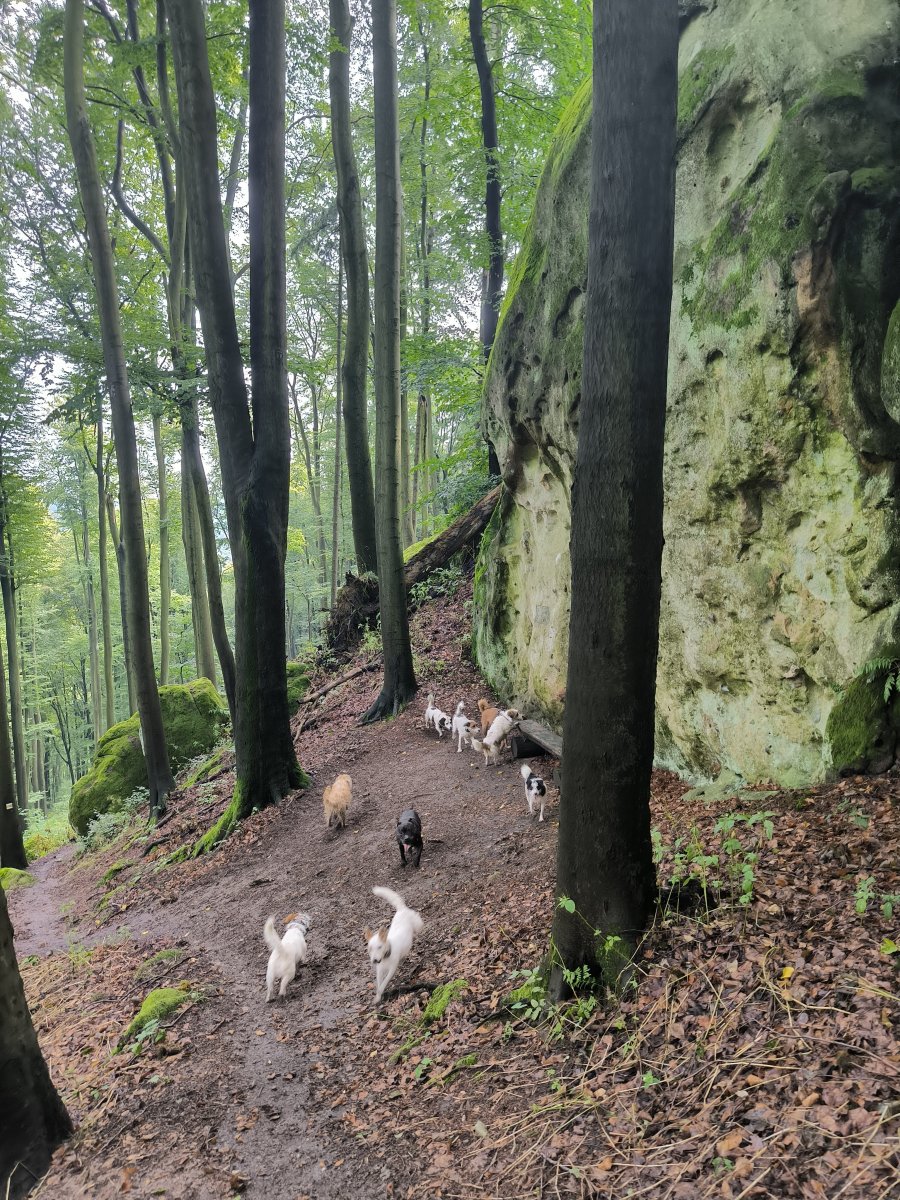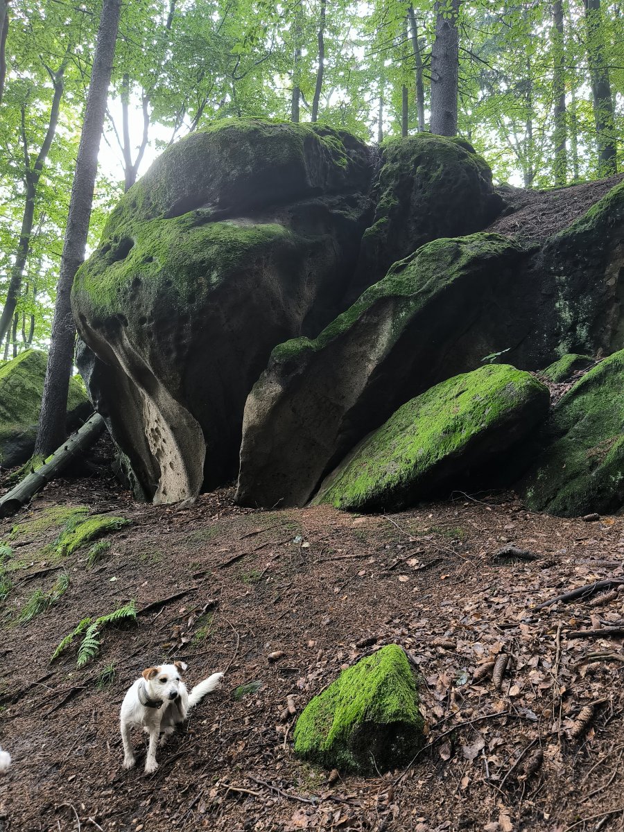 Trasa se jevila úplně parádně a prošli jsme si nádhernou cestu lesem. Trošku jsme zmokli, trošku jsme se okoupali průchodem lesním tunýlkem a pak jsme scházeli kolem nádherných skal po stezce Zdenka Sedláčka. No ale já si vymyslela, že se chci podívat na skalní útvar Miláček. A to byla největší blbost dne. 😂 Krpál jak kráva. Už tam nikdy nejdu. 😂