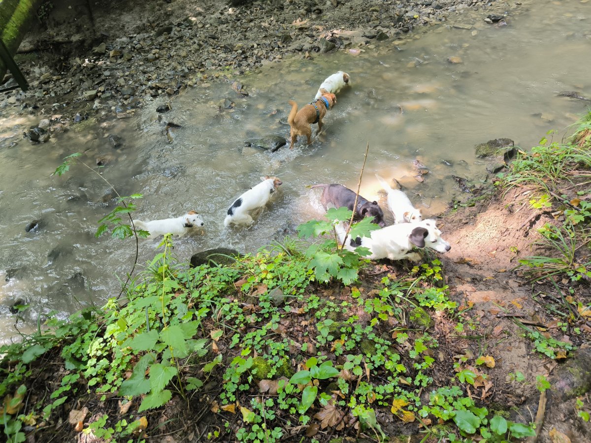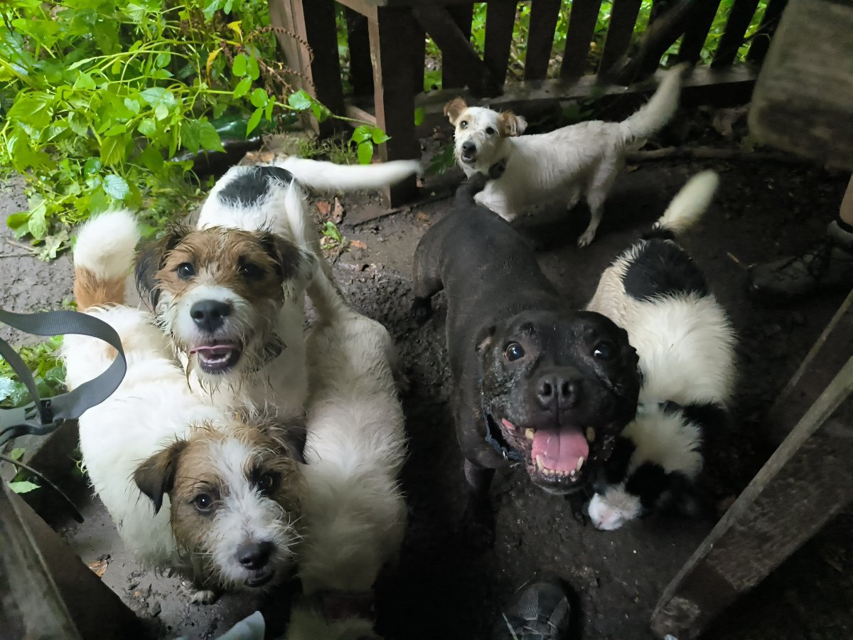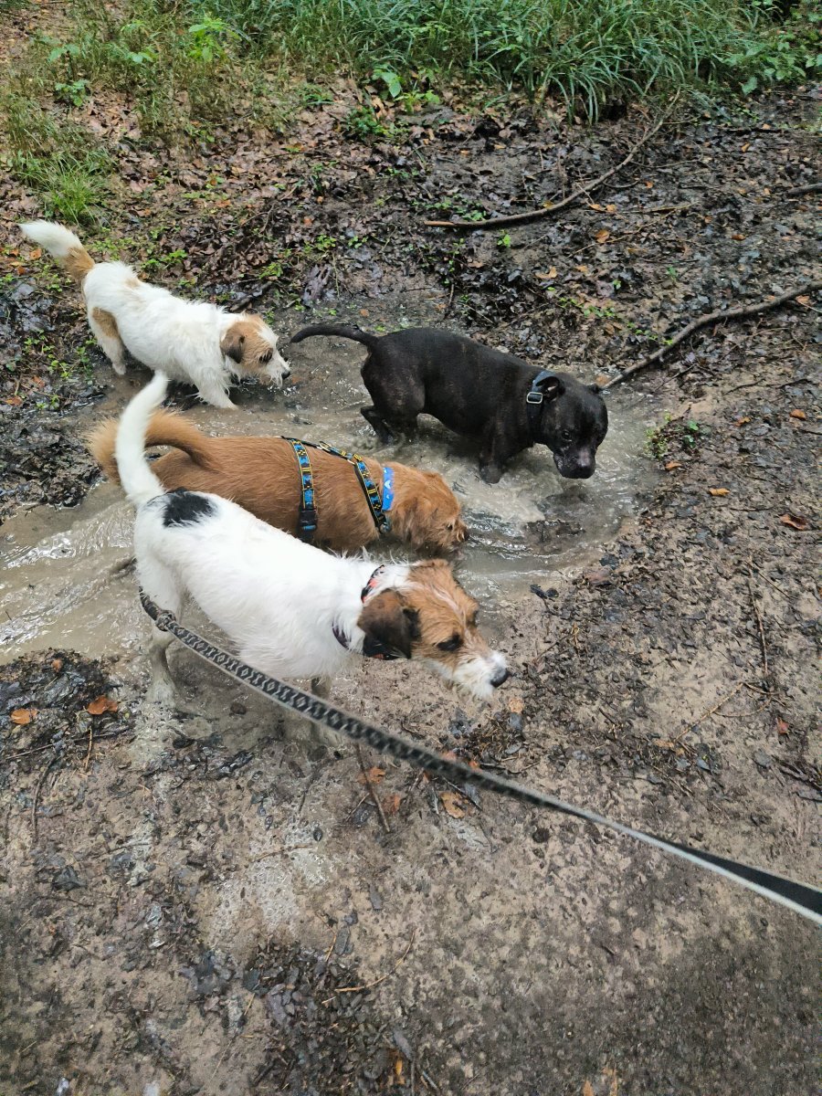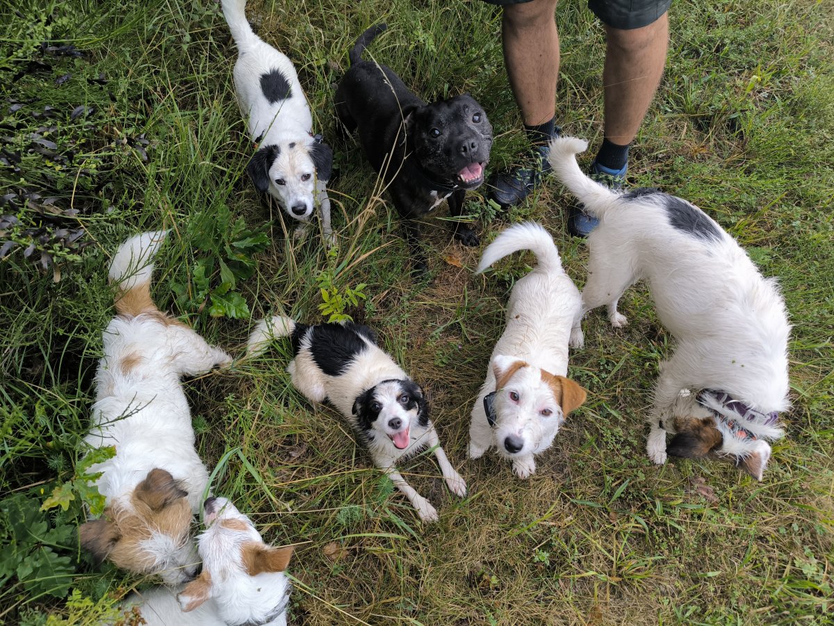 V neděli to měl více odpočinkové. Teda pomáhal doma s úklidem, to je prý velmi náročná činnost. A večer měl náhodné rande v parku se svojí oblíbenou fenkou. Pán ji má z útulku prý od bezdomovců, ale je strašně hodná a moc hezky si s naším Jackem hraje. Pak se přiřítil ještě labrador, který si chtěl taky hrát, ale jeho tělesná konstituce a energie byla na Jacka už moc, tak jsme šli dál, aby nás neporazil. O zlomené končetiny ani jednoho z nás jsem moc nestála.😅