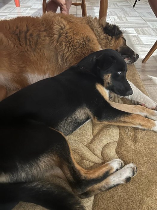 A keďže sme v téme venčenie - tak pridám fotečky po venčení - bola u nás dcéra s jej “čudom” hyperaktívnym. Po lietačke na dvore takto skončili pod stolom 😊. Evidentne je moskovák naozaj adeptom na zoznam “nebezpečných” plemien. Myslím že úplne rovnako ako všetky ostatné psy - pri zlom vedení a zaobchádzaní bude nebezpečný každý
