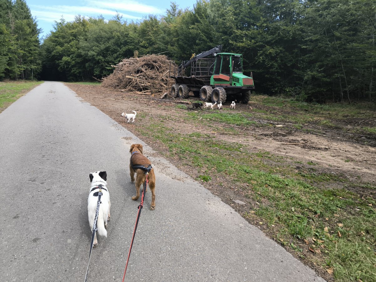 Konečně se dá chodit aj po poledni. Vedro nebylo vůbec. První polovinu trasy jsem se radovala, že kloší zmetci uplavali, ale v druhé polovině nás trochu potrápili. A asi jsem ze psů sundala aj dva pijáky.