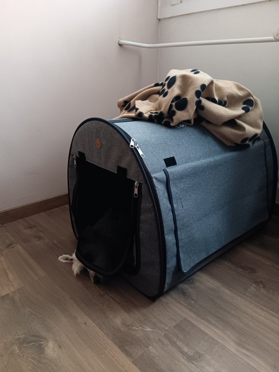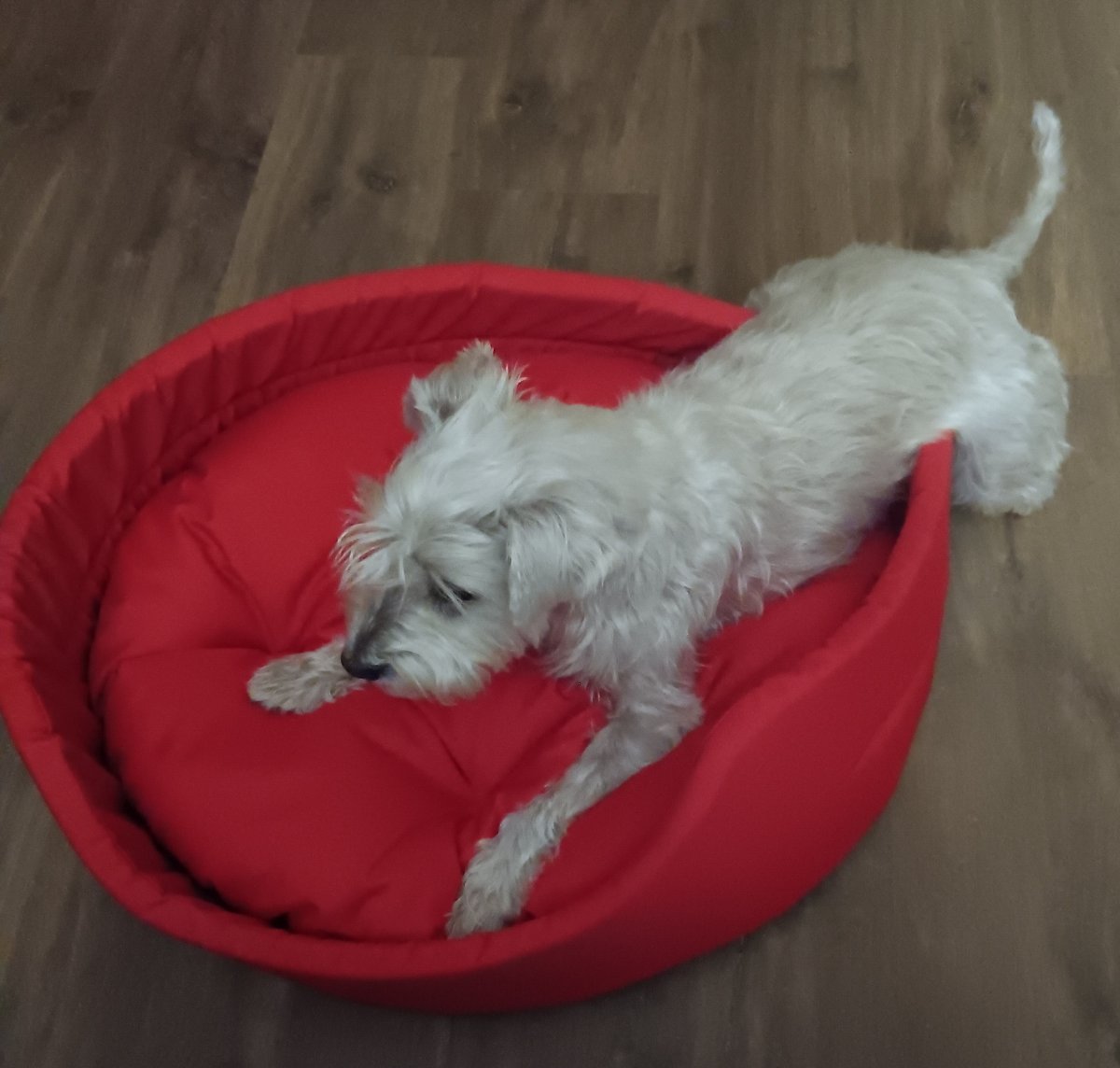 👍 tak to jsem nakoupila dobře a bude to tak doufám fungovat. 😉 Původně jsem měla na prodejnu objednaný tmavě modrý a ačkoli jsem měřila, dumala, tak byl v reálu prostě malý. Bělouš se rád roztahuje. Tak vyhrál ten červenej větší, mělo to tak být. Když je to takhle, jsme chráněni oba. Jinak pelechů má dohromady hodně a ještě i boudinu, to proto, aby se vešli ti, co snad v budoucnu přijdou. On se rád vyvěšuje, tak tady to vidíte, teda jen ucho 🙈 když si chce zalézt, bouda je jasná věc. Kluci mají červené obojky, a to je dobře, jsou taky chráněni.😉