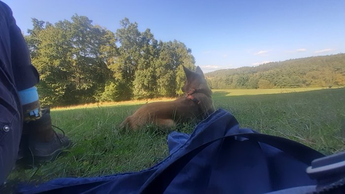 Měli jsme sakra hezký venčení, je fajn, že teď není extra vedro, ale pořád se dá v trávě zalehnout a kochat se.