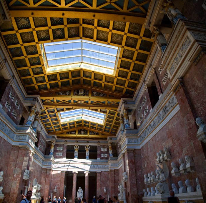 bylo v Bavorsku krásně. Hádanka první je Walhalla u Řezna. Nechal ji postavit v první polovině devatenáctého století bavorský král Ludvík I. (dědeček toho Ludvíka, jehož jsme na dovolené “stopovali”). Walhalla je podivný památník (starořecký chrám pojmenovaný dle síně severských bohů) plný soch velkých osobností německého jazyka (třeba Kateřina Veliká a nebo “náš” Valdštejn by se taky našli…)