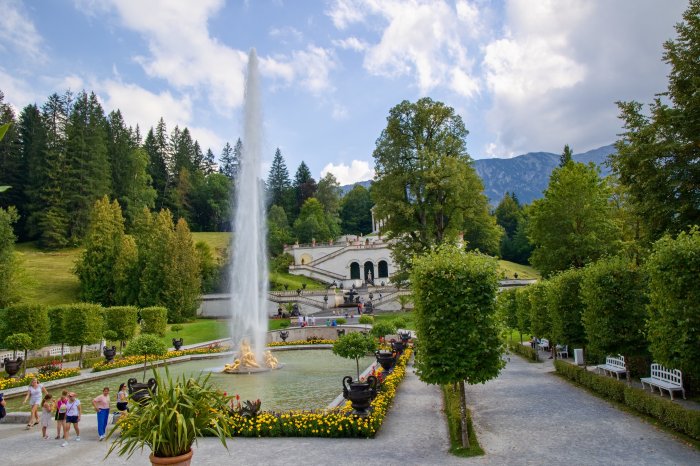 Hádanka druhá je zámeček Linderhof. Jeden ze tří zámků (a jediný plně dostavěný), které si Ludvík II. nechal pod alpskými velikány ve druhé polovině 19. století vystavět. Hádanka třetí je podivná lovecká chata vysoko v horách na místě Schachen. Dole je standardní lovecká chata, nahoře komnata plná zlata a vodotrysků z pohádek Tisíce a jedné noci. Král to místo miloval - a pohádky miloval taky… Není divu, že přivedl bohaté království bavorské skoro až k bankrotu. Neb vystavěl i hádanku čtvrtou - velký zámek na ostrově uprostřed jezera Chiemsee. Tam se inspiroval Versailles… a místní zrcadlový sál je krásný. Třetí zámek, který stihl za své relativně krátké doby vlády vystavět je hádanka šestá - všem dobře známý zámek Neuschweinstein. Pátá hádanka je Starnberské jezero, kde u zámku Berg se král (už zbavený svéprávnosti) i se svým osobním lékařem utopil.