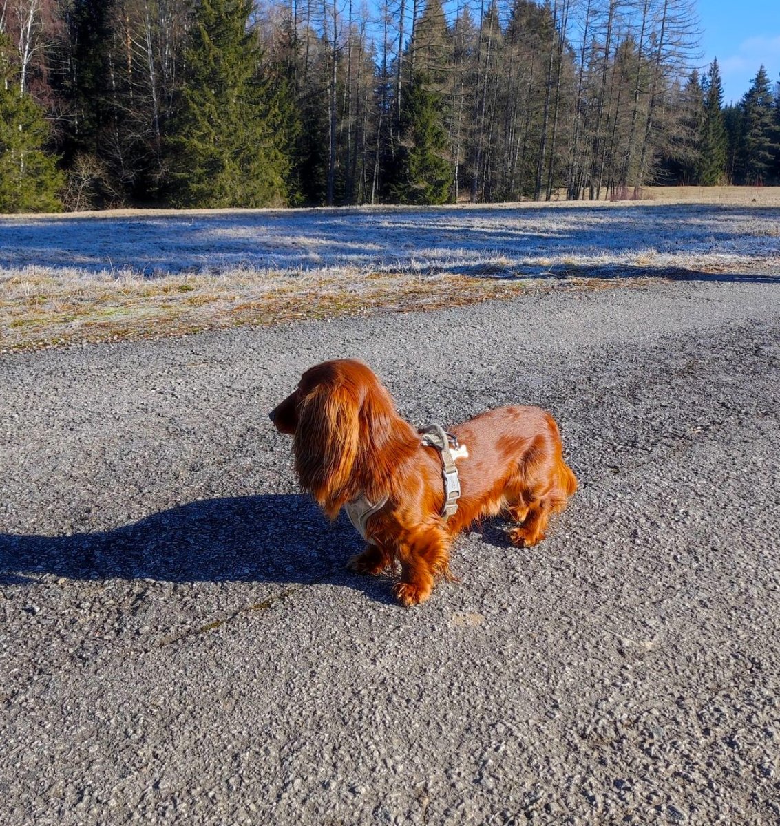 Cesta nahoru byla prudká, ale pěkně suchá. Bohužel na druhou stranu Čerňavy už nedosvitne slunko a tak nás čekala pěkná sklinka. 🤣 🧊