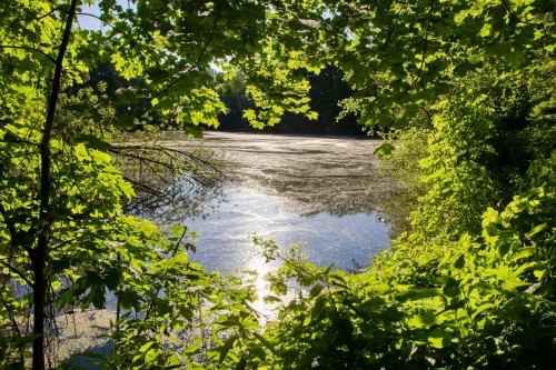 Kousek parku je opravdu park, pak schůdný lesopark a pak už jen džungle kopřivová. Ale rybník jsme objevili... Místní zajíci využívají cesty raději, než mokré kopřivy a tak jsme s nimi sdíleli často trasu. U šestého už Yoda rezignoval... a neřešil ho