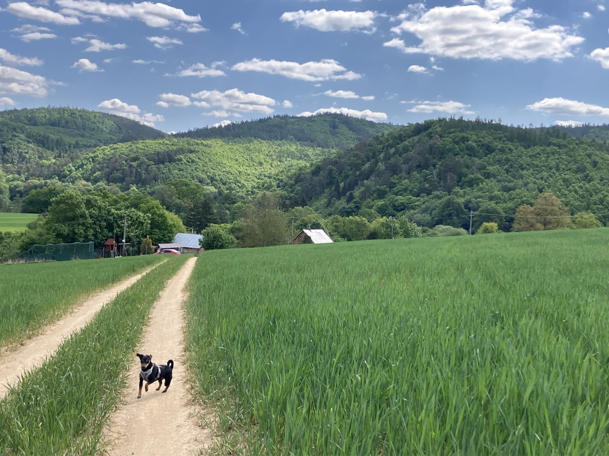 Dneska jsem mu to vynahradila už klasickou běžeckou trasou cca 18km, bylo nádherně a konečně se tváří spokojeně. Ještě dáme něco delšího zítra na Kokořínsku.