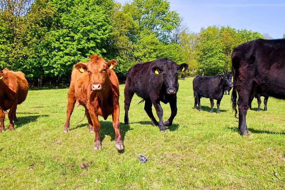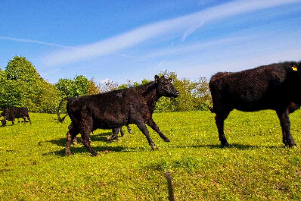 a teď ty nepsí - kromě lesů za humny je to i okolí Bukové hory a Ptačích kamenů kousek od ní. A taky se předvádí “naše” Zrzečka a “náš” menší ježek (máme i většího). K těm kravám - byly už z dálky slyšet - byly děsně ukecaný. A když viděly na cestě Yodu - rozutíkaly se - ne od něj, ale k nám… hopsaly a pořád si něco vyprávěly. Yoda raději kráčel loukou na celou délku vodítka od nich… Bál se hodně. No - ten jeden ohradníček nevím jestli by je zastavil, kdyby se chtěly vydat dál