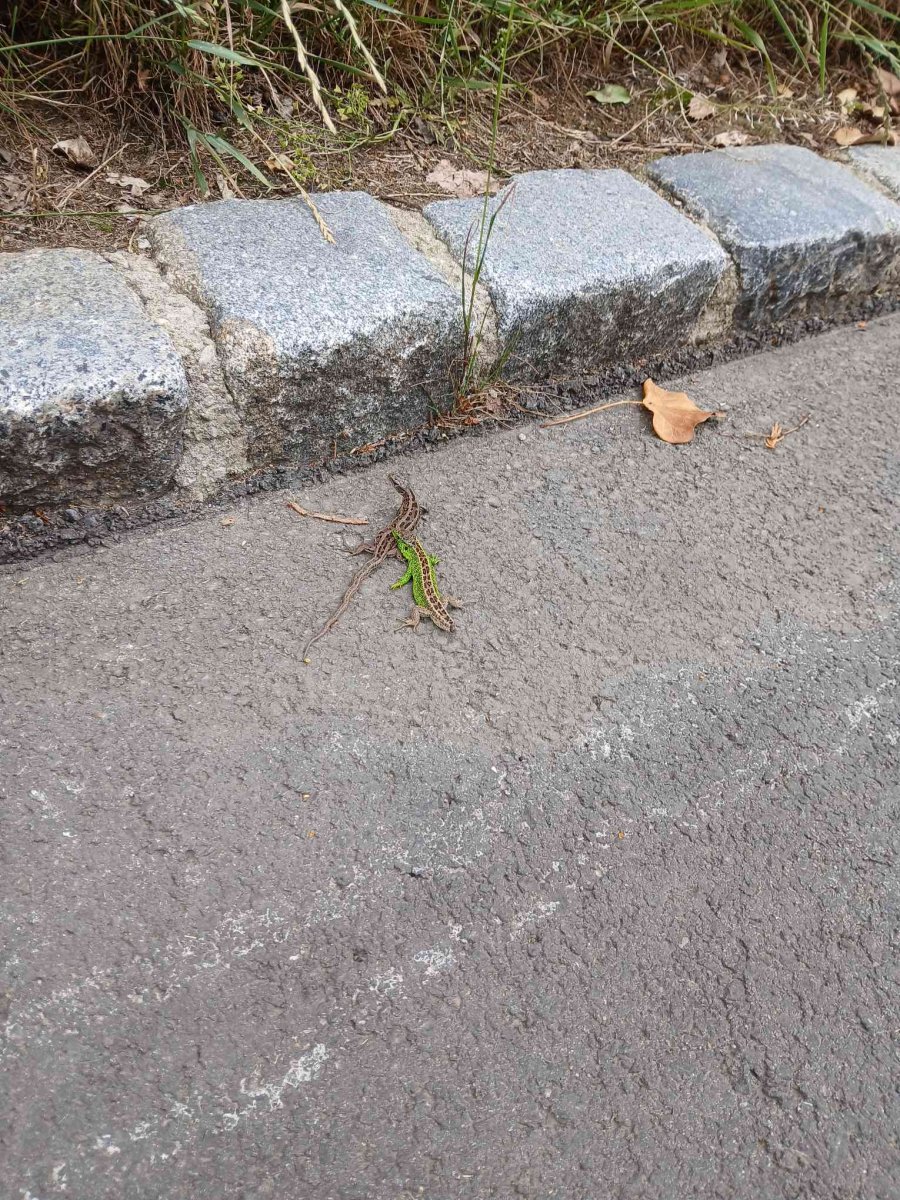 I v Praze to žije. Tyhle dvě zjevně randící ještěrky jsme potkali při odpoledním rychlovenčení. Méně optimistický byl nález ulovené kosice a mláděte hřivnáče.