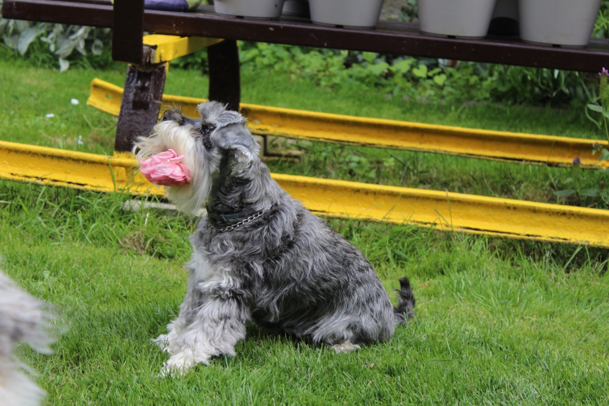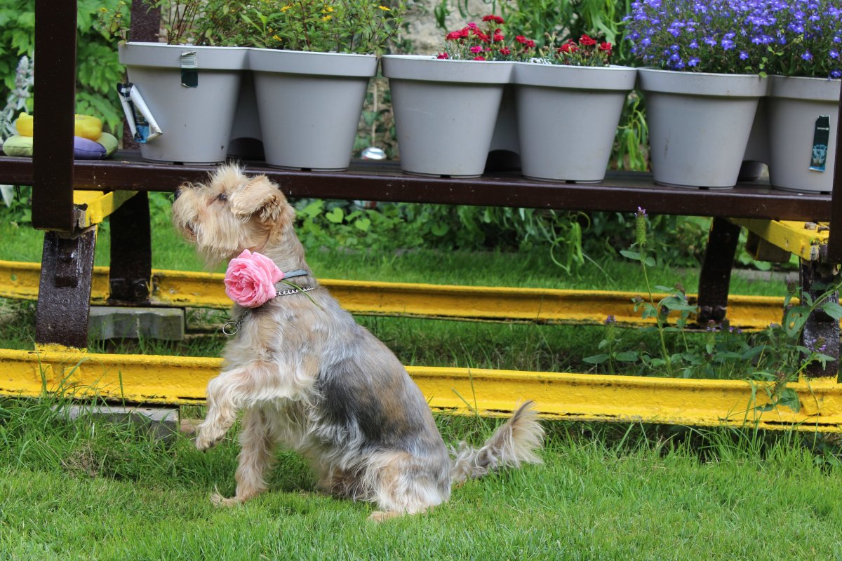 a odpo učení Dafi nošení růže,mezitím focení Žeryka s růží za obojkem,k tomu Betty pachový čtvereček na dvoře-at nás neruší🙂-fotila jsem na přání bývalé -švagrové paničky Žeryka-k narozkám…