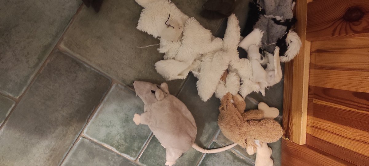 U nás žádný plyšový hračky nevydrží, konkrétně tyhle krysy přišli hned 1. večer o tlapky a ocas. Evidentně si kluci myslí, že je třeba všechny přečuhující části amputovat…
