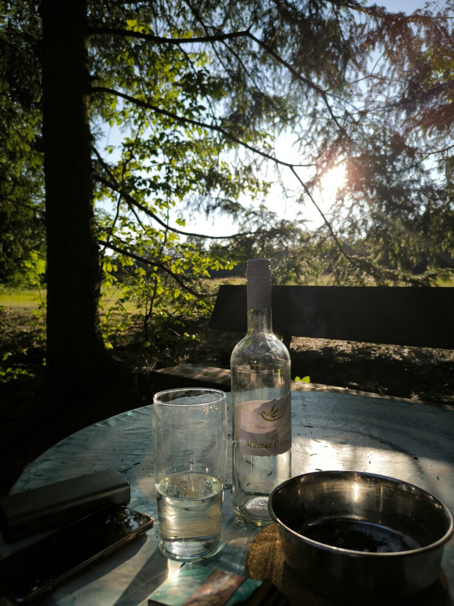 (V tom půllitru je vinnej střik. 😂 Jiný sklenice na víno v chatě nebyly. 😂)