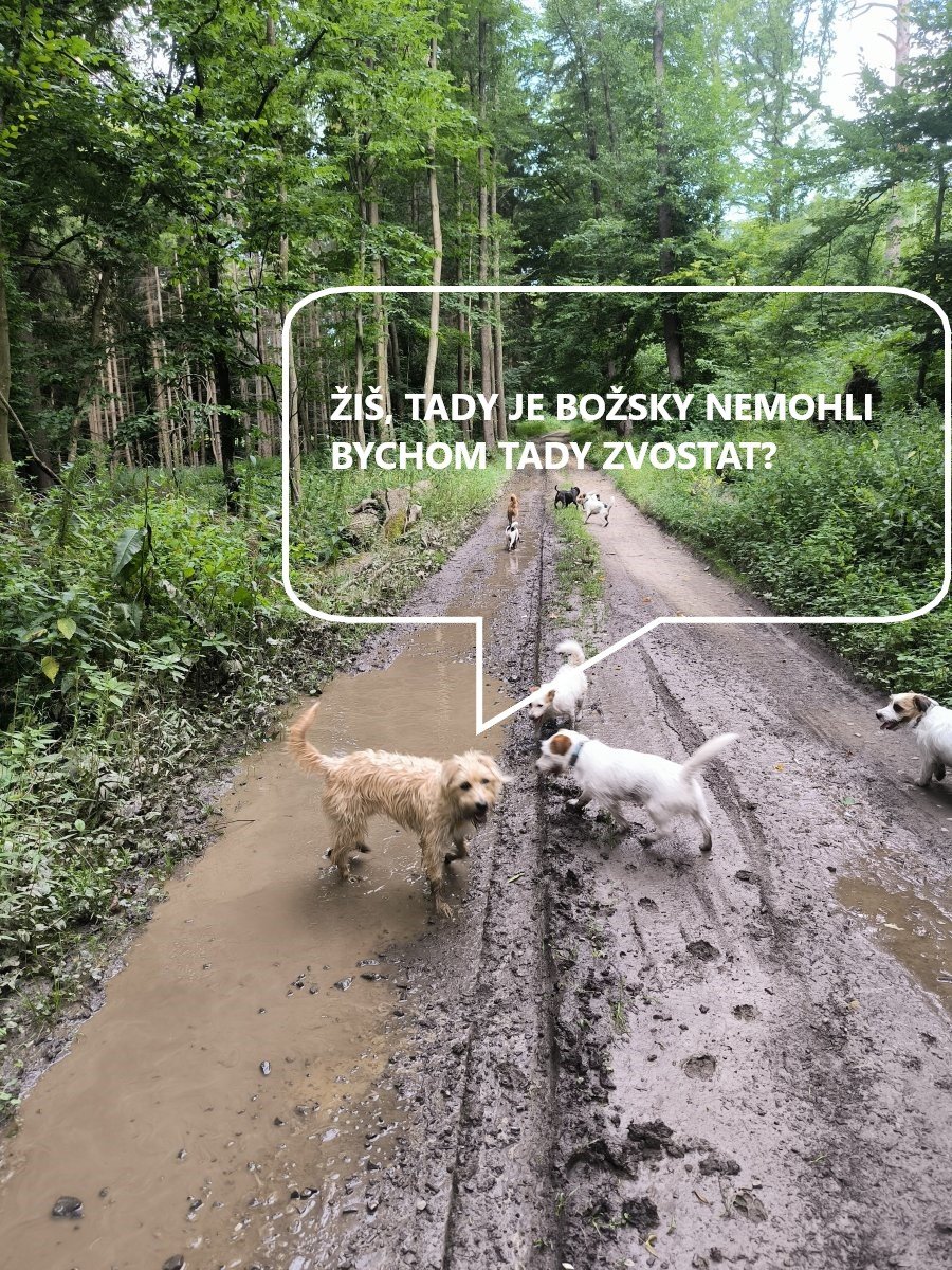 v úterý jsem šla s Dafi v šet ráno na hodinu a něco podél řeky,kde ukazovala lavičky,hupla si na pařez,oběhla pár stromů,zpět jsme šly přes město,bylo chladno dost,já se pak šla ošmikat v osm po snídani a v PEPCU jsem koupila k tatkovi čmuchací kobereček za 70 kč,-ve slevě😀