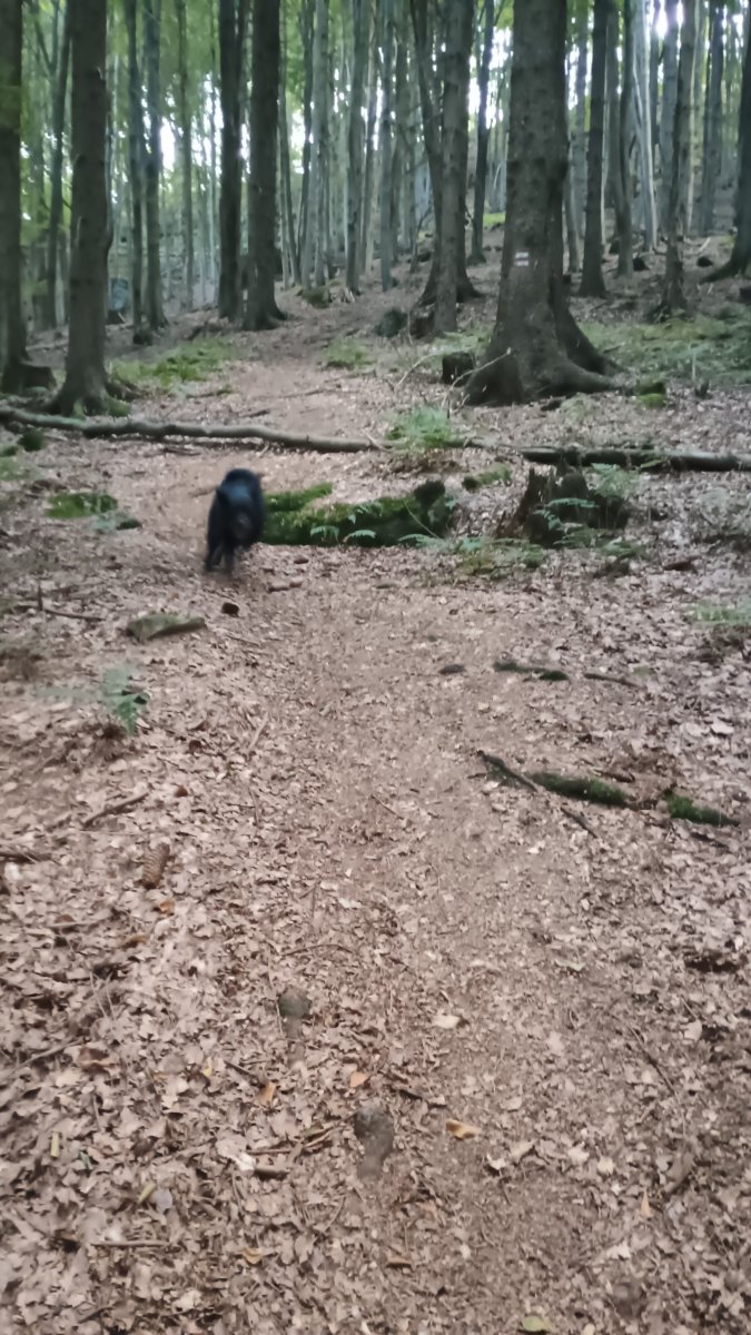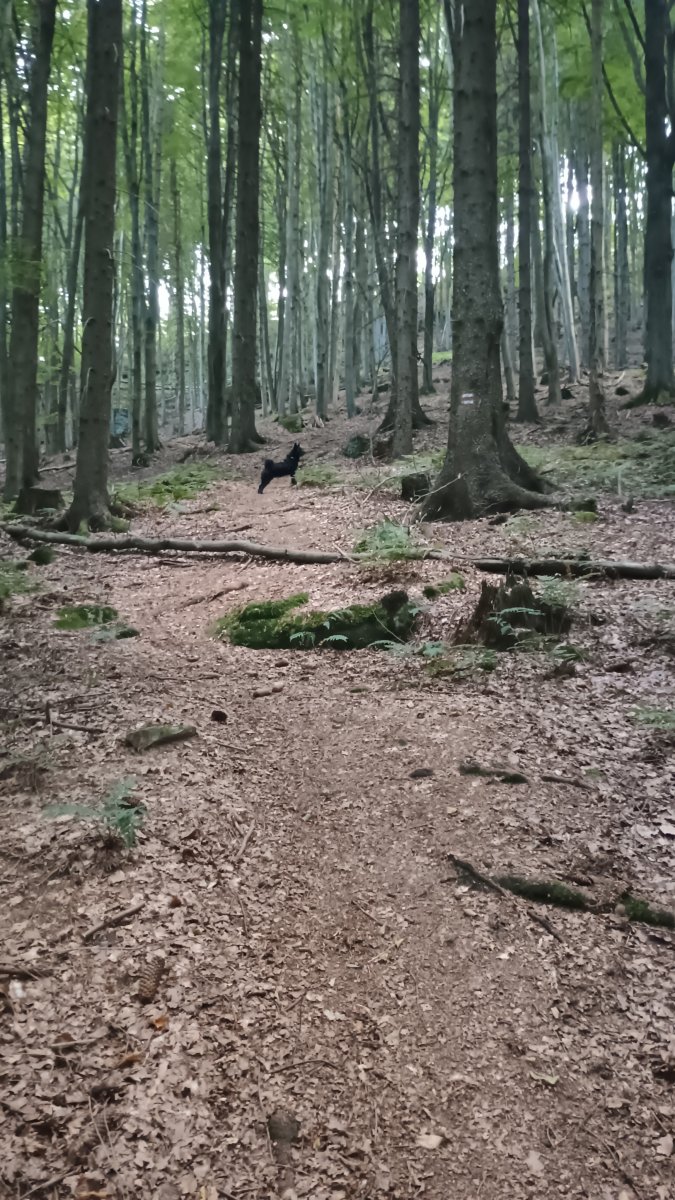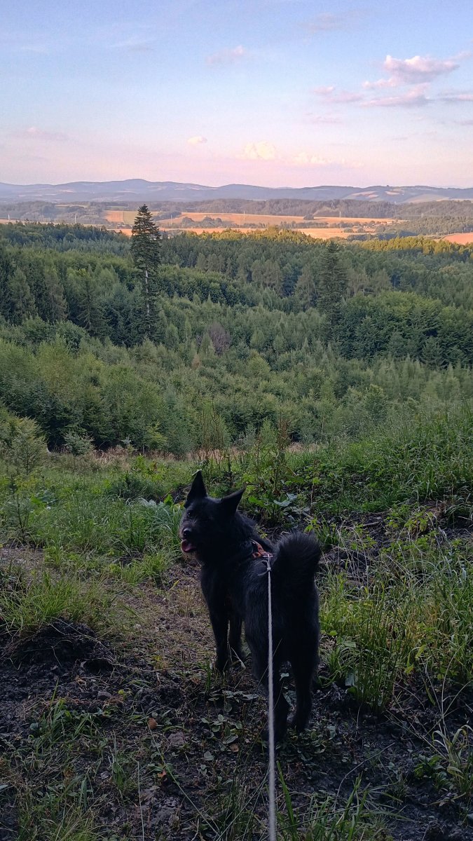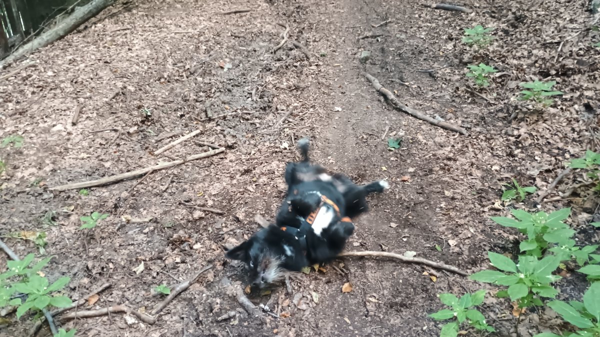 Když mám teda toho psa v deprési, tak jsme šli na lehce delší procházku do lesa. Vybrala jsem cestu, kde podle mapy měl být sem tam potok. No nebyl. Občas nějaká louže, ale žádná pořádná osvěžovna ne. Malinu jsem ze začátku nechala běhat na volno, to je ještě taková hodně soustředěná na mě, ale pak šla zas na špagát. Cesta na mapě vypadala jako víno, ale ve skutečnosti byla dobrá třetina po hrbolatém terénu, sem tam pořádný houštiny, aby se ty moje doškrábaný nohy pěkně vyjímaly v sukni 😀. Ještě navíc ten hrbolatý terén vypadal jako rozrytý od prasat, tak jsem prakticky celou cestu si s Malinou vyprávěla, aby o mně věděli. V půlce cesty mi došlo, že to asi za světla nestihnu a hnala jsem rychlochůzí, jak urvanej vagón, tak to budu zase dobře namožená 🤭. Stihli jsme to teda jen tak tak než byla tma jak v pytli, což mi docela odlehlo, protože se mi začalo zdát, že ten les už v tom přítmí nevypadá moc přátelsky a Malina si to asi myslela taky, páč i když jsem jí ujišťovala, že to mám pod kontrolou a vím co a jak, tak bylo vidět jak jí odlehlo a zaradovala se, když jsme konečně uviděli auto 😁.