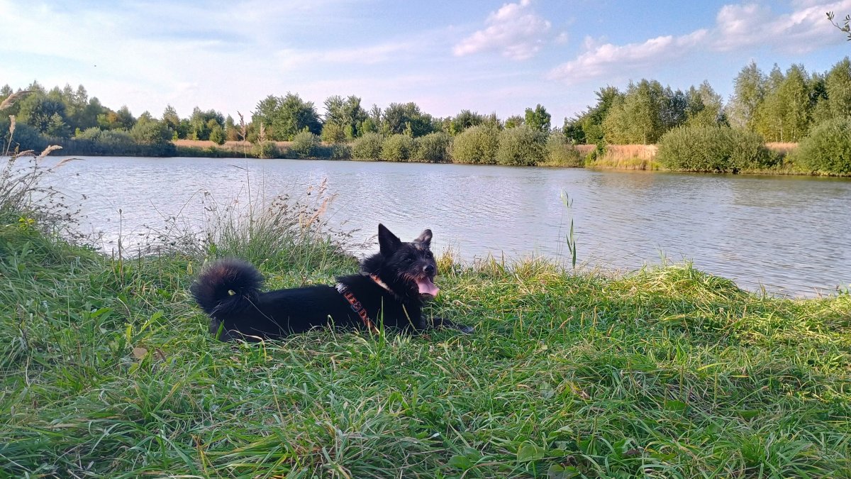 My jsme dneska ráno, zase vyrazil k řece. Akorát na to, že jsme šli lehce po šesté, bylo mraky cyklistů. Ono by to nevadilo, kdyby prakticky každý neměl potřebu nás předjíždět v plné rychlosti a tak těsně, že nás div neporazil - na úzké cestě, kde není ani kam uhnout (navíc když se blíží ze zadu, nejsou slyšet). Jinak to bylo fajn. Po cachtačce se mladý pán solidně vyválel. 😅