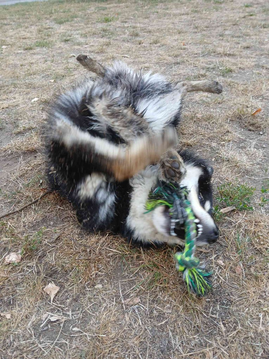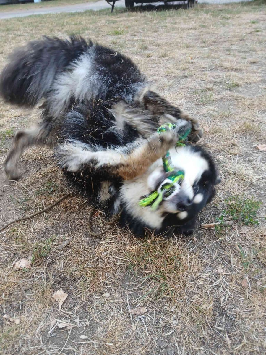 Takže klasika, ležím na zemi, psi mě líbaj a Fram mi ještě snaživě podává tu větev.🤣