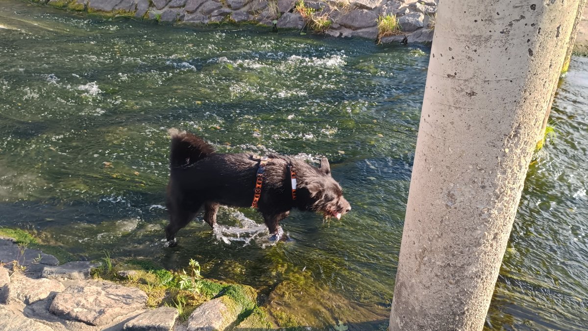My včera po poldru, tam jsem teda lidi s pejsky potkávala, ale zase je tam hodně “Napajedel”, tedy řeka tudy teče, což se v tom včerejším vedru hodilo.