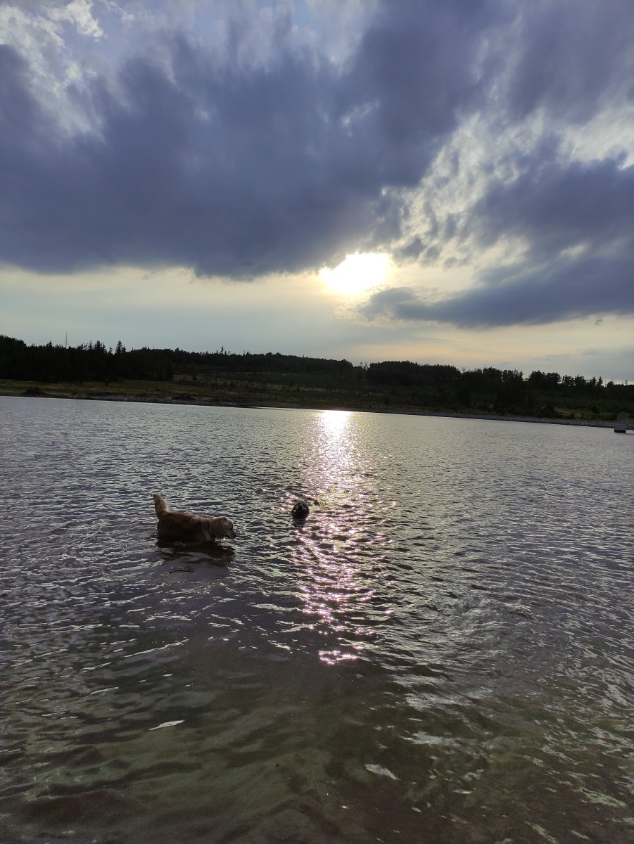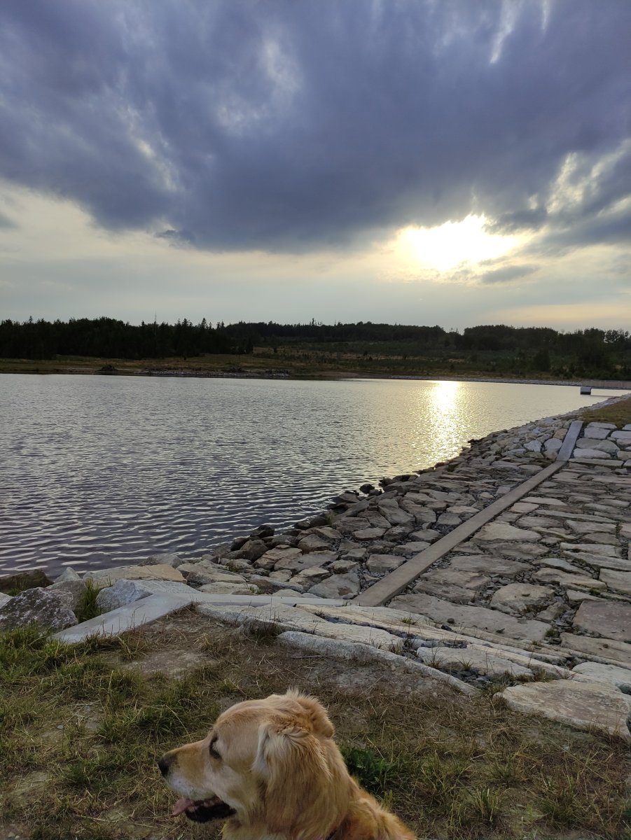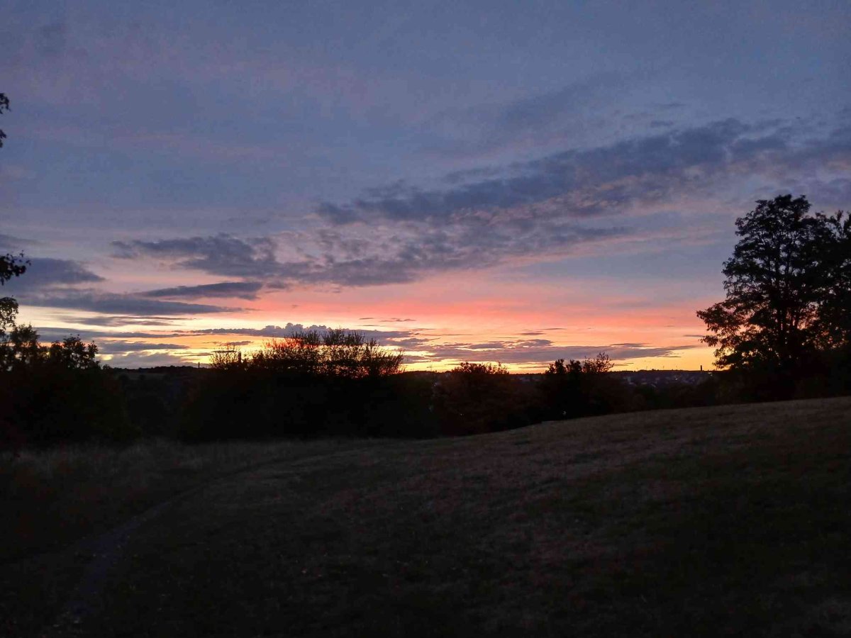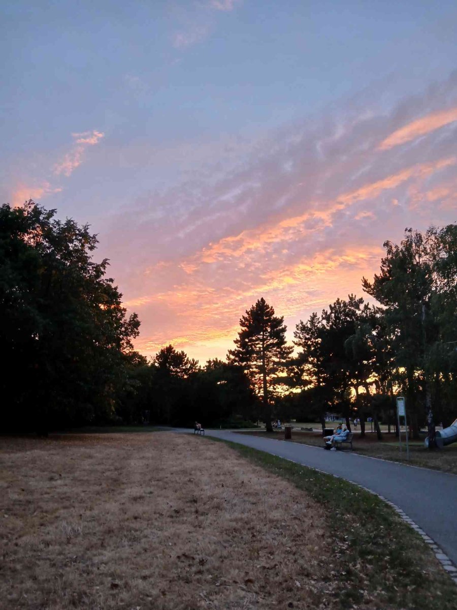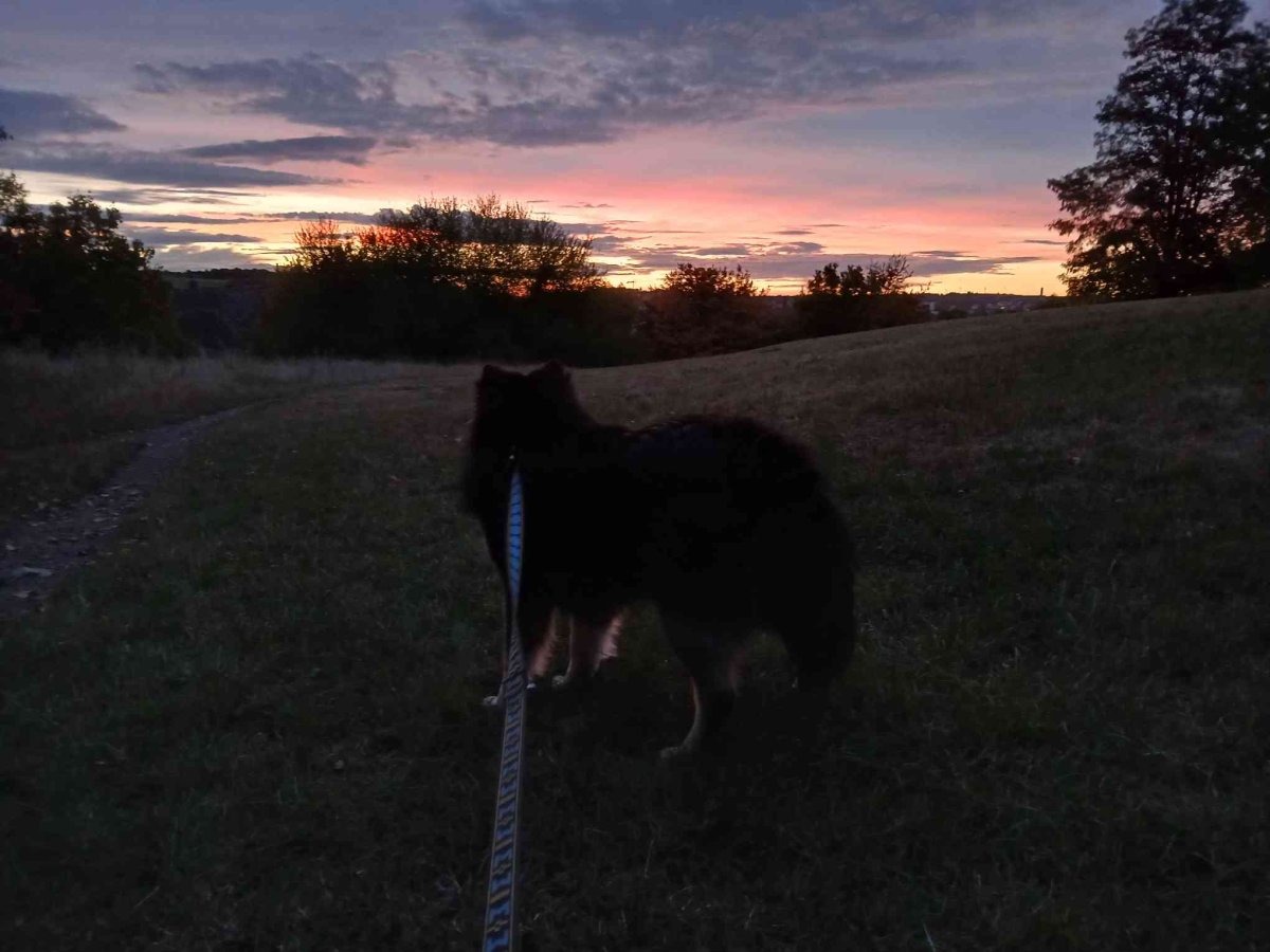 Včerejší večerní venčení. Dali jsme si nejdelší možný okruh v okolí a chytli jsme to krásně se západem slunce. Tohle si užívám, když večer doslova maluje. Domů jsme se vrátili těsně před tím, než přišla bouřka. Takovou jsme tu dlouho neměli.