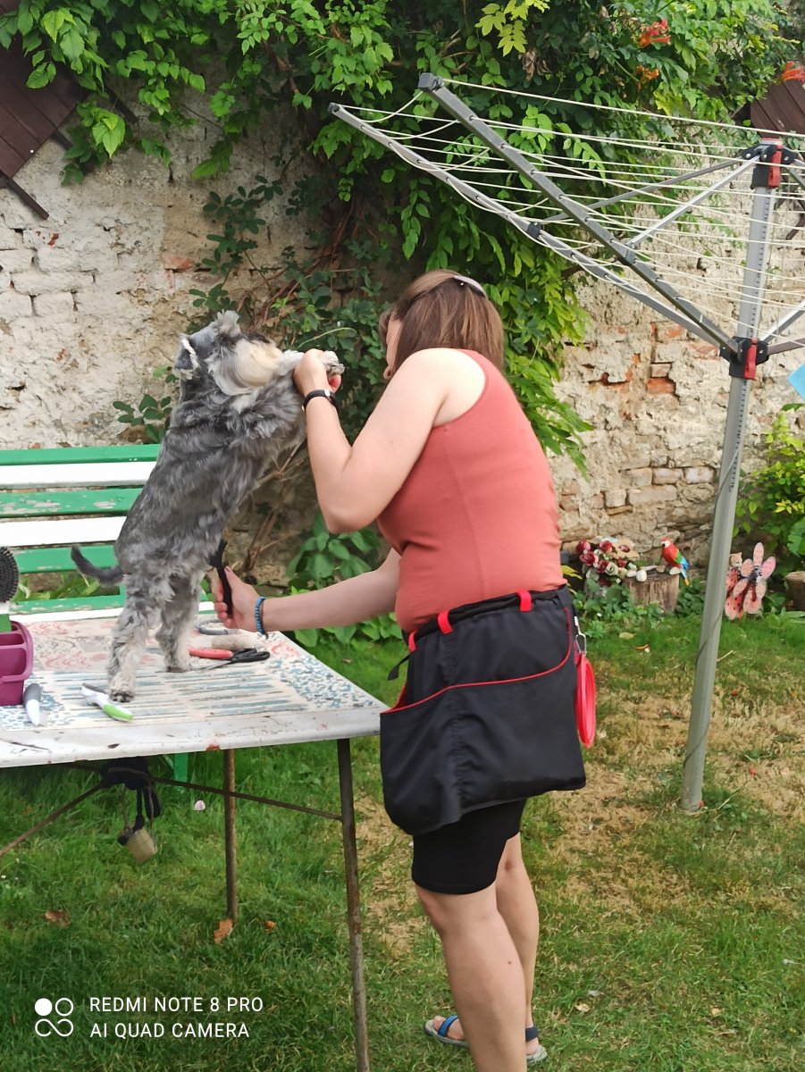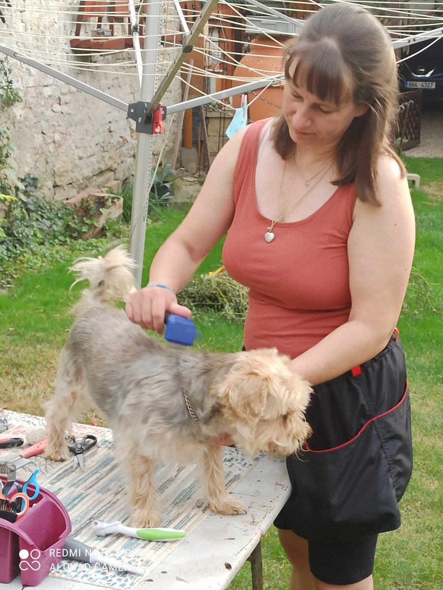 a šly jsme natáčet česací videjko-Dafi se totiž imí na povel oklepat-po česání..