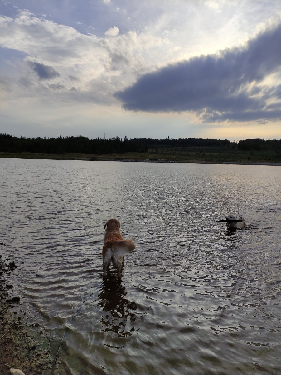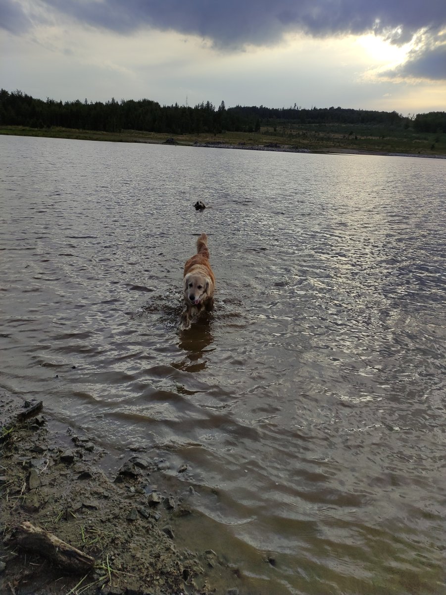 Dnes jsme objevili nový rybník. Je schovaný v lese, teda spíš v tom, co po něm po kůrovci zbylo. A není tam signál, takže jsme fakt hledali úplně naslepo.