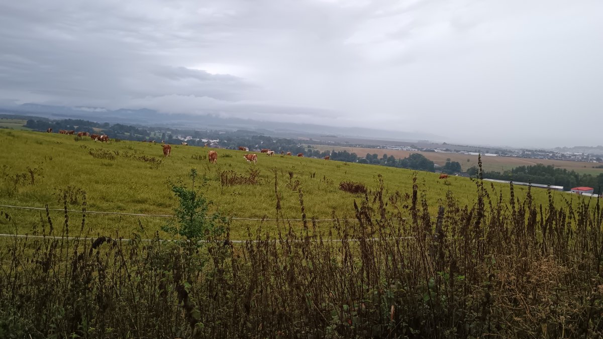 a ráno mokro,bláto,šly jsme ven s kamoškou s basendžíkem a s Žerykem,k rybníčku kolem velkých ohrad a polí a zpět polama….a dědinou,