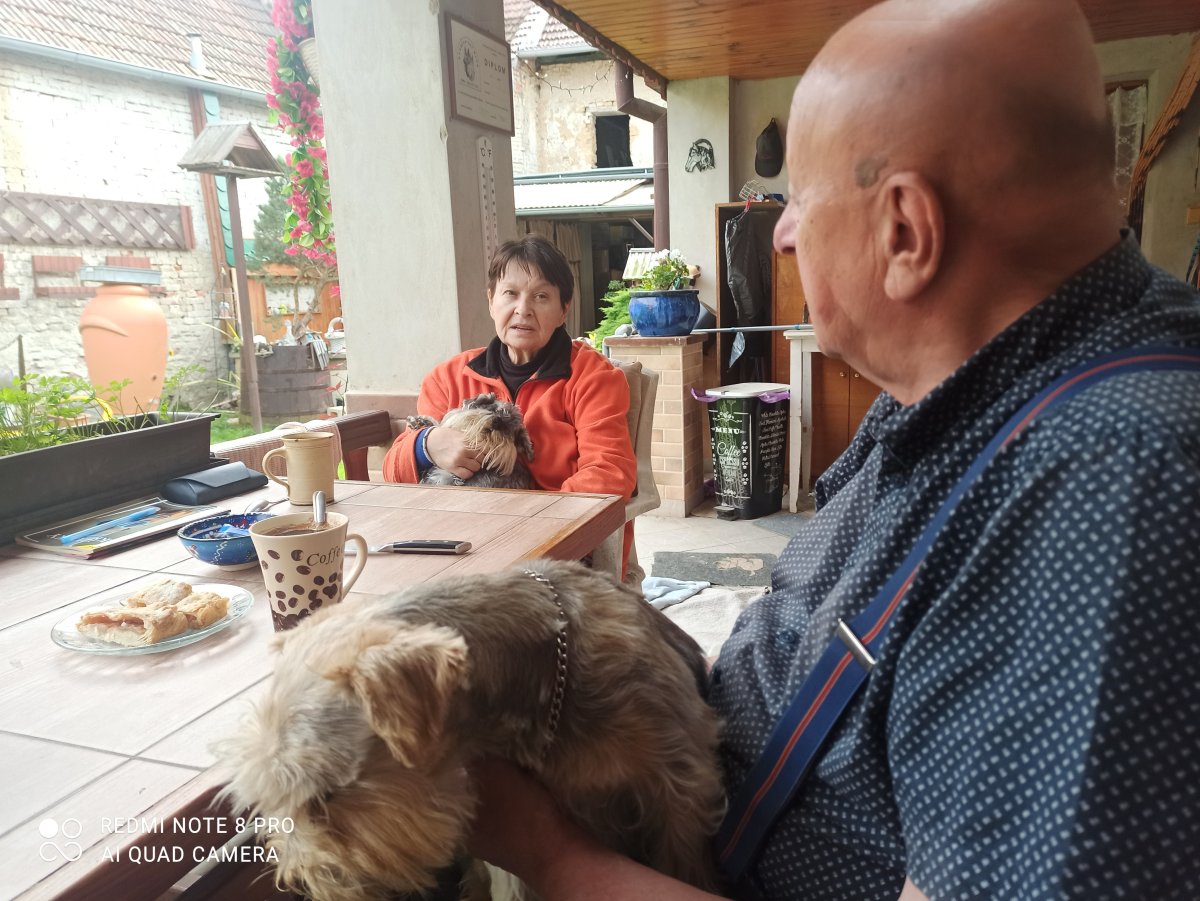 odpo dojel tatka,tak se sedělo chvilku na terase,a já pak šla ze 3 psama kousek po dědině