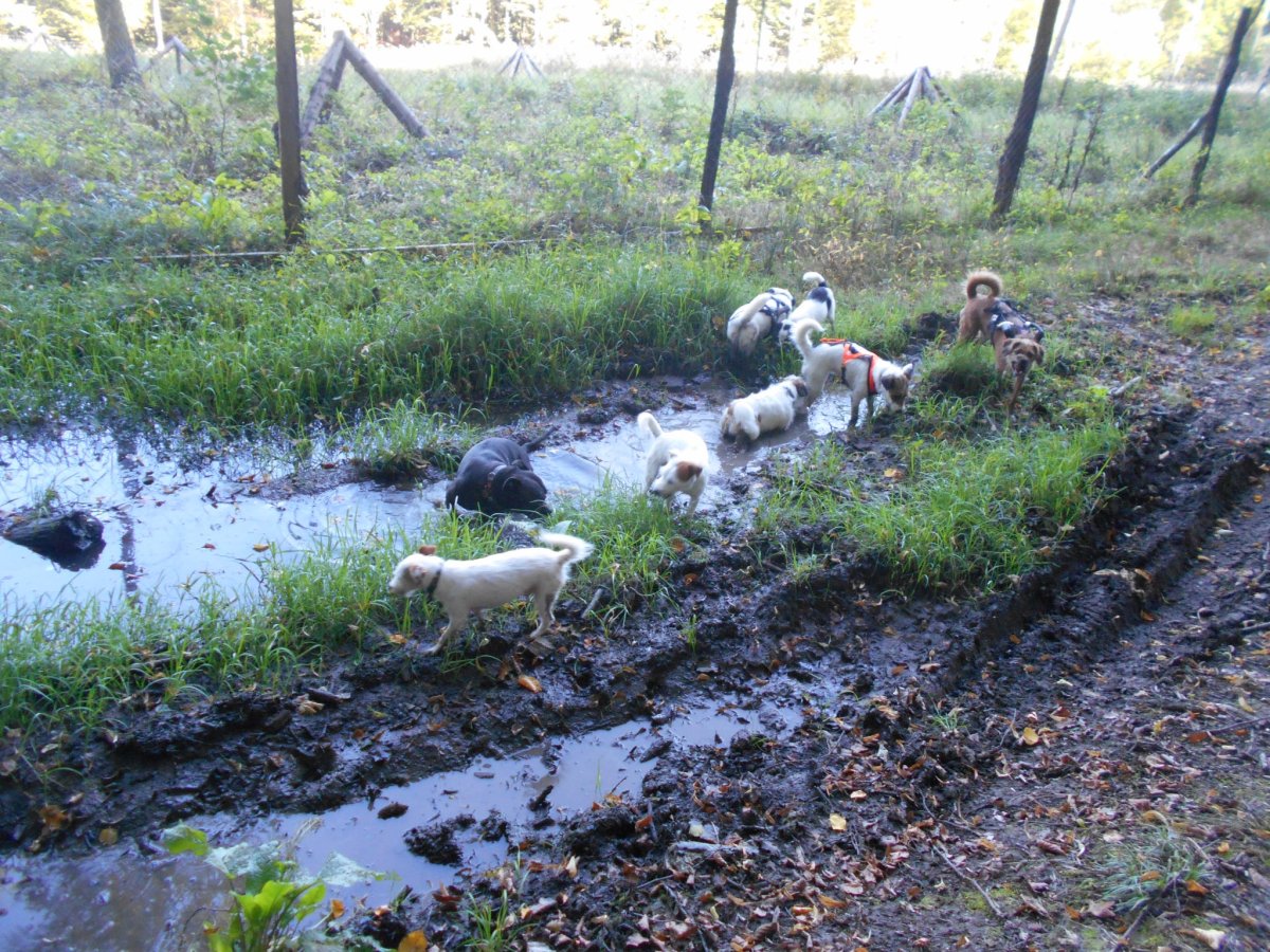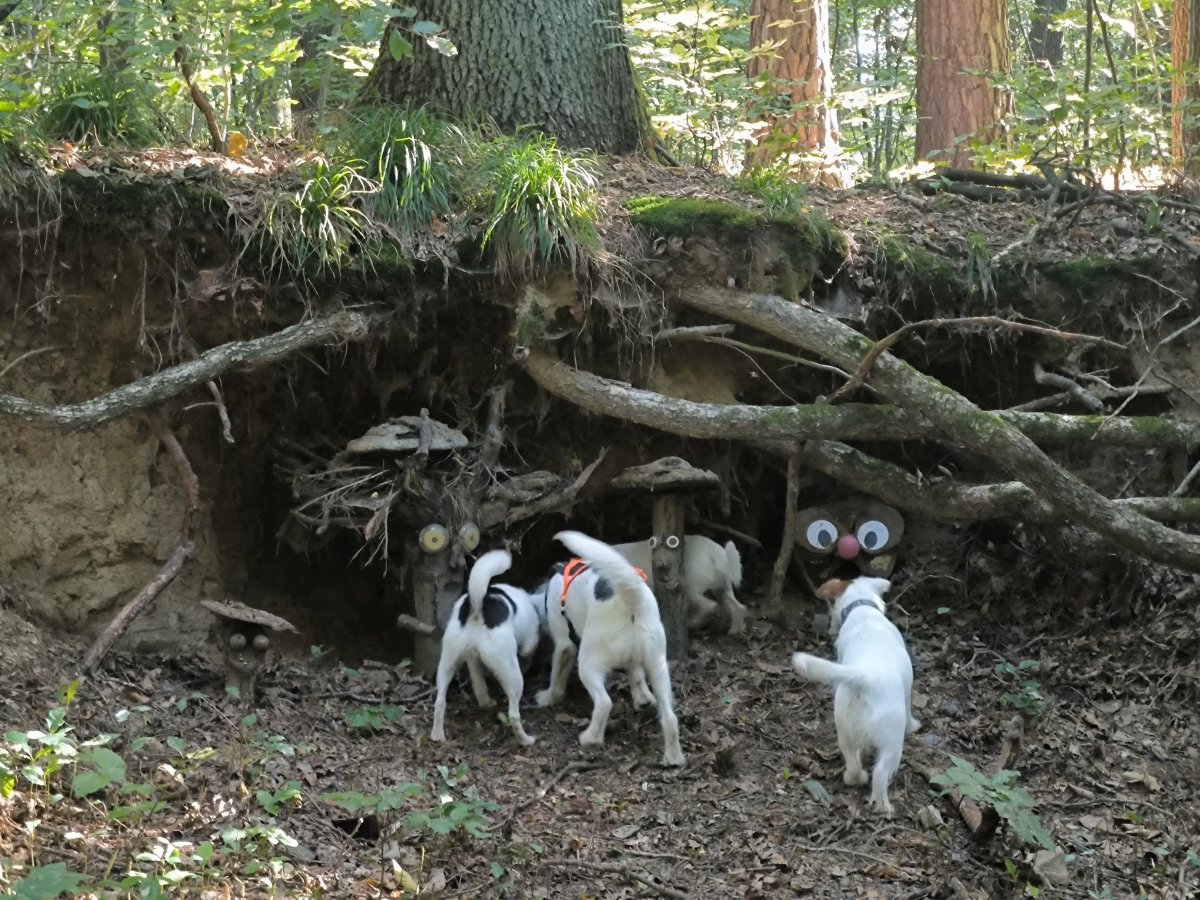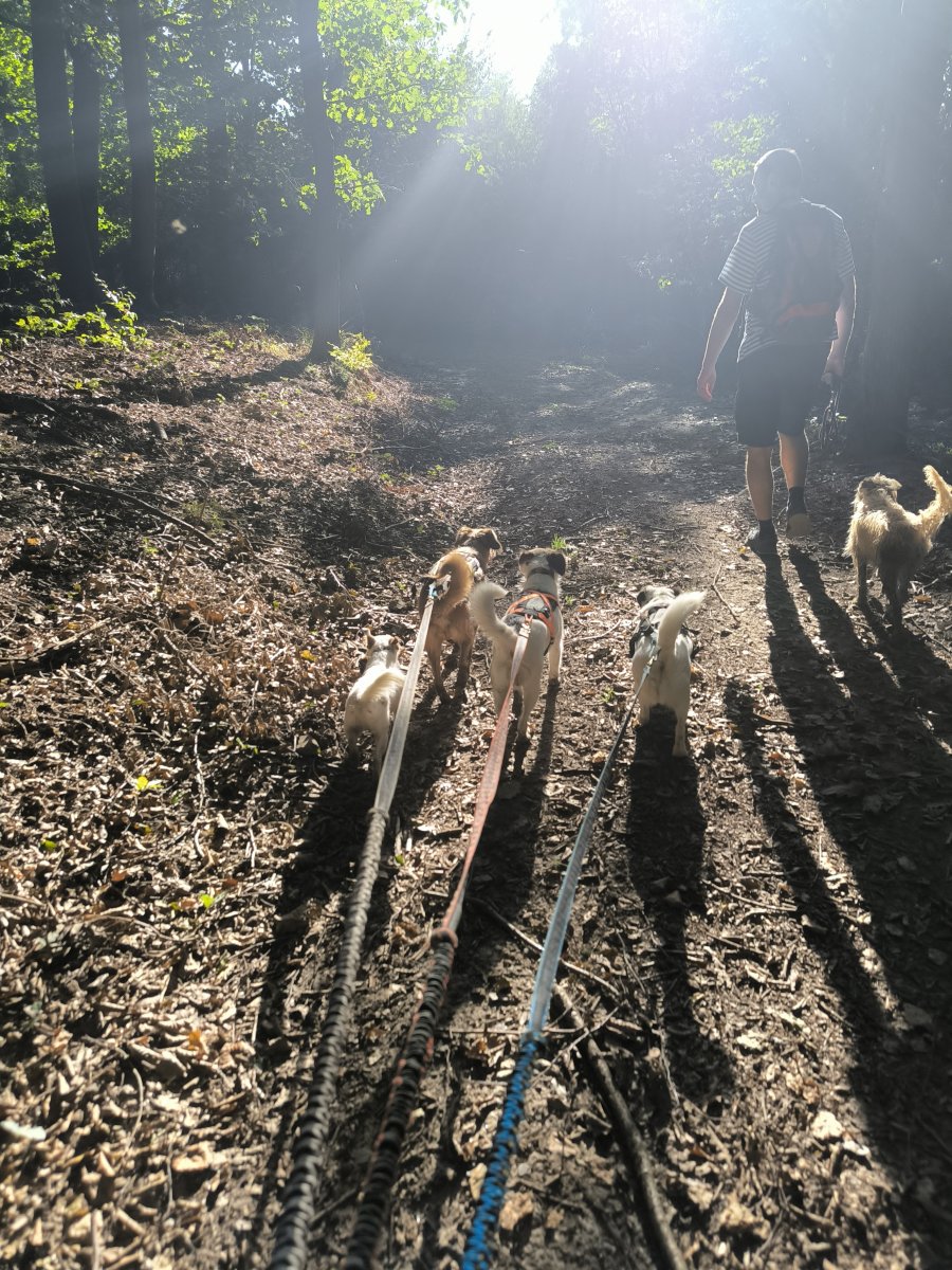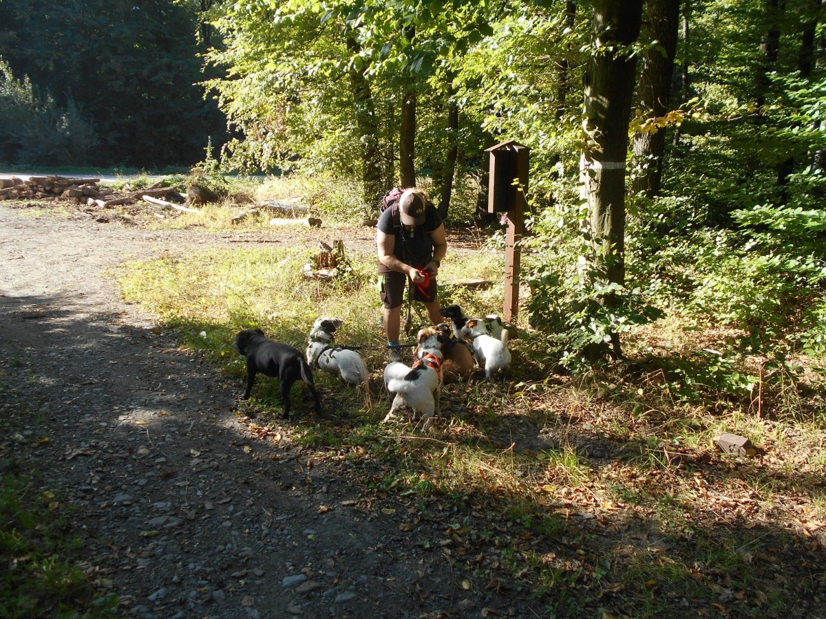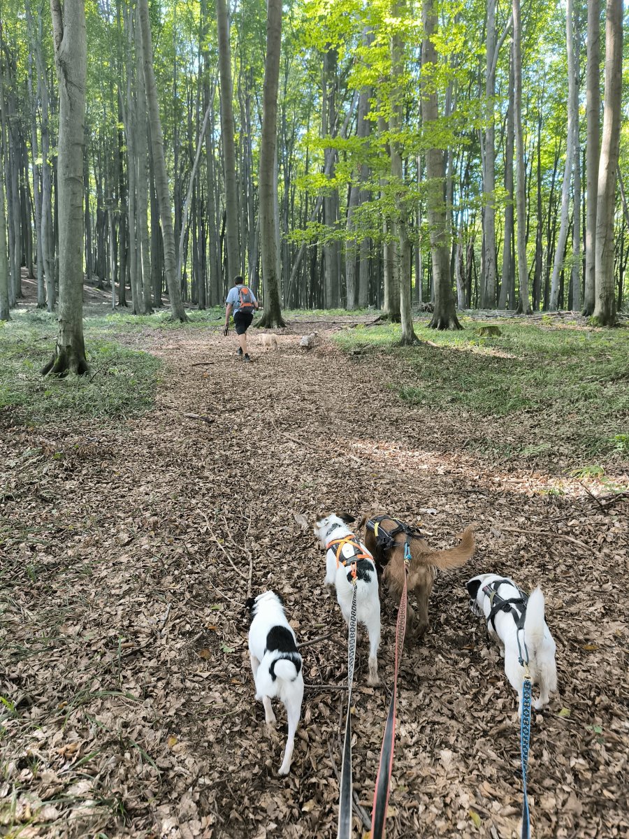Cesta byla plná zážitků. Hned ze startu se psi neskutečně zahnojili v obrovské kaluži plné bahna. Pak jsme lehce sešli z cesty, ale zase potkali super přístřešek, kde jsme si dali snídani. Kámoš si teda dřepl na cestu a hned vzápětí mu kolemběžící Rémin vyškubl housku a spolkl ji. 😂 Pak jsme potkali moooooooc trpaslíků a další zastávku si dali už u kaple. Kam se vetřela náhodná kolemjdoucí a psi si ani nevšimli, že se k nám někdo přidal. 😂