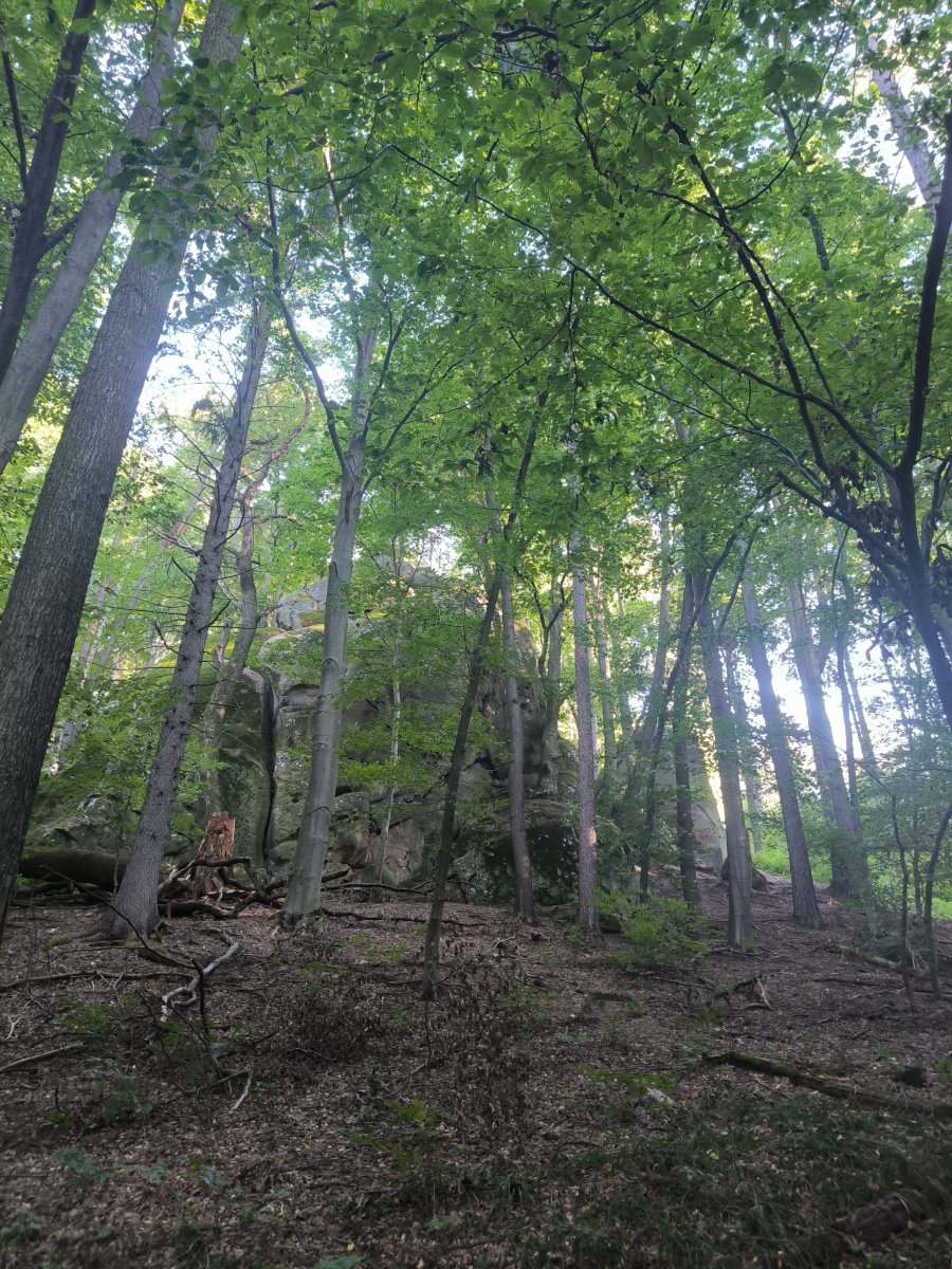 My jsme konečně po měsíční pauze vyrazili v neděli na výlet a udělali si krásných takřka čtrnáct kiláčků z Kudlovické doliny, okolo Budačiny, Tabark, kolem trpasličího města a stromové kaple sepjatých dlaní a pak pěkně přes ten Kudlovický hřeben zpět k autu.