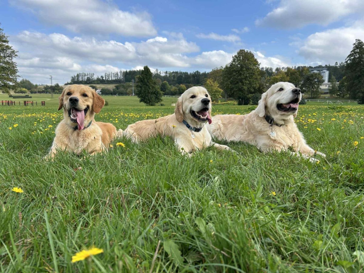 u řeky jsem házela Žerykovi míček a měl sedni/lehni vstan a postatní psi sedni a packy dávaly…