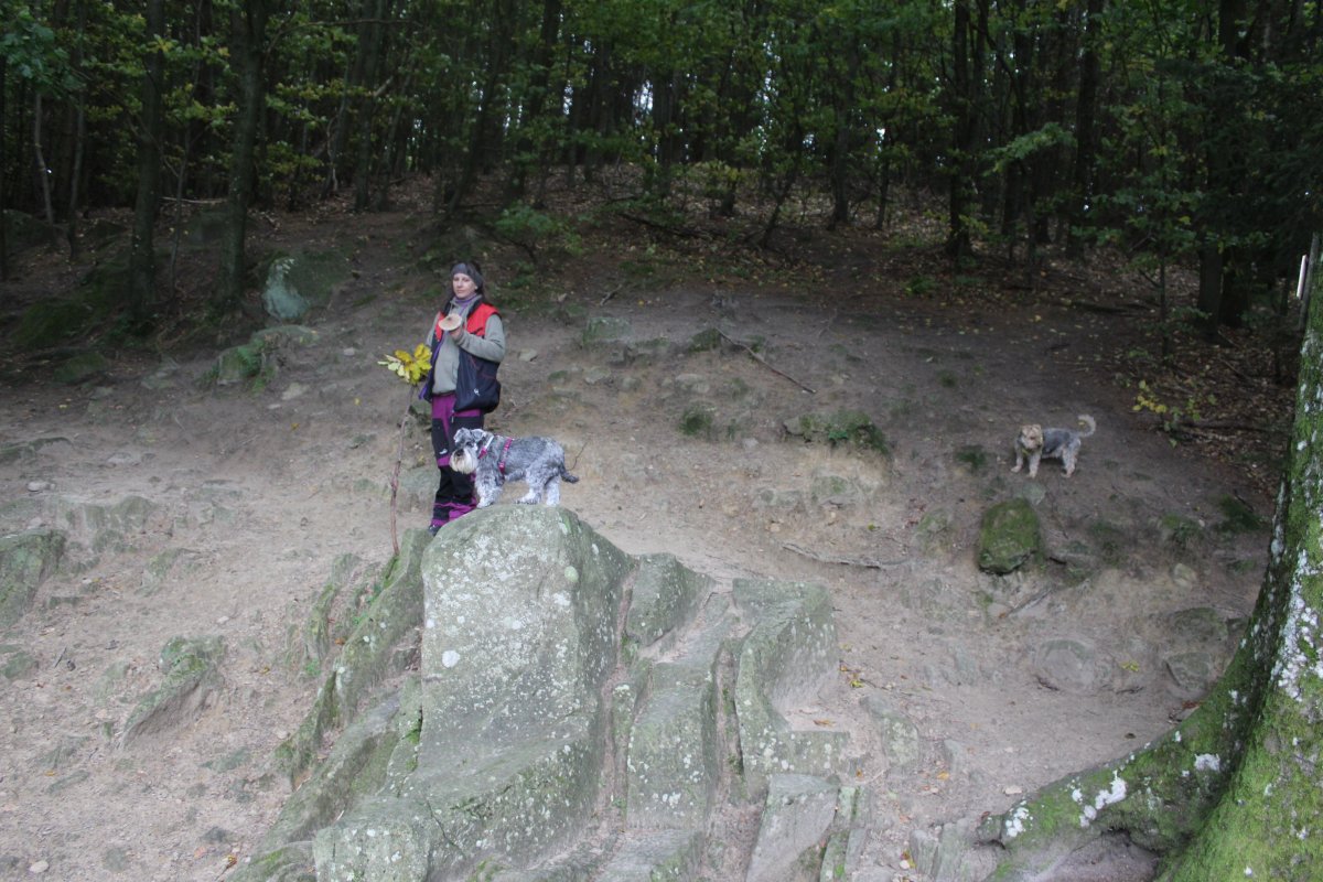 a dnes dopoledne v Chřibech 2 a půlhodiny,od Křížku-parkoviště na Kazatelnu,na sv.Klimentek a zpět,Dafi celou!!!!dobu běhala i do kopce,hopala po pařezech,šutrech,Žeryk blaženě válel sudy,byla mochomůrka i bedle,i barevný listí a dokonce si jedna z turistek/houbařek pomazliůa Dafču!což se nám nestává,ke konci vycházky byly turisti a houbaři,akorát nebylo slunko a fučelo,,,,,jinak super-opět mě Dafi přesvědčila,že mám 2 psi-v lese na výletě veselej akční běhavej knírač,a za humnama,v dědině,ve městě-otrávenej unavenej pes….:/-já už se v tom psovi nevyznám…:-O